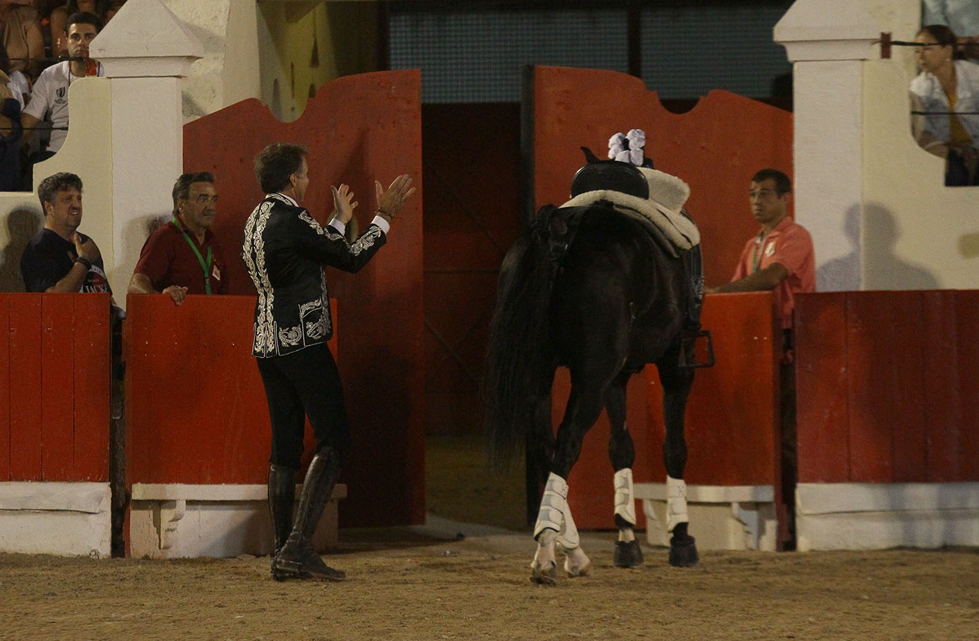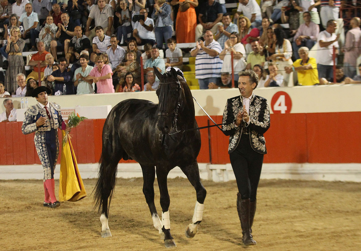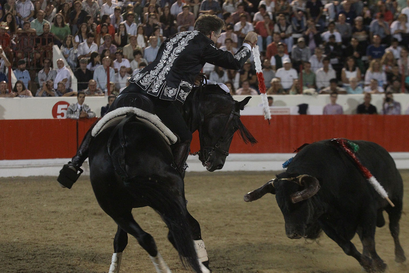 En el quinto también le tocó remar un tanto a contracorriente porque a pesar del buen toreo de JIBARO y de sus os excelentes reuniones para las farpas, los tacos no partieron y el palo quedó enganchado al astado. Eso no minó la actitud del navarro que salió con BERLIN a por todas y a enfrentar a un astado enorme, con 610 kilos de peso, pero que tenía calidad y eso el luso-alemán y el navarro lo absorbieron para dejar escritas en la arena de Alcochete una nueva página mágica de toreo ecuestre. Se vació BERLIN en cada reunión y desparramó todo su torería en un número incontable de hermosinas, consintiendo al astado al máximo y firmando un memorable tercio que nadie quería que se terminase. Seis banderillas colocó Pablo con BERLIN que fue despedido con el público en pie y solicitando más. Vuelta al ruedo memorable para Pablo junto al forcado y otra vuelta más esta vez acompañado de un majestuoso BERLIN que recibía así el merecido cariño de la afición.