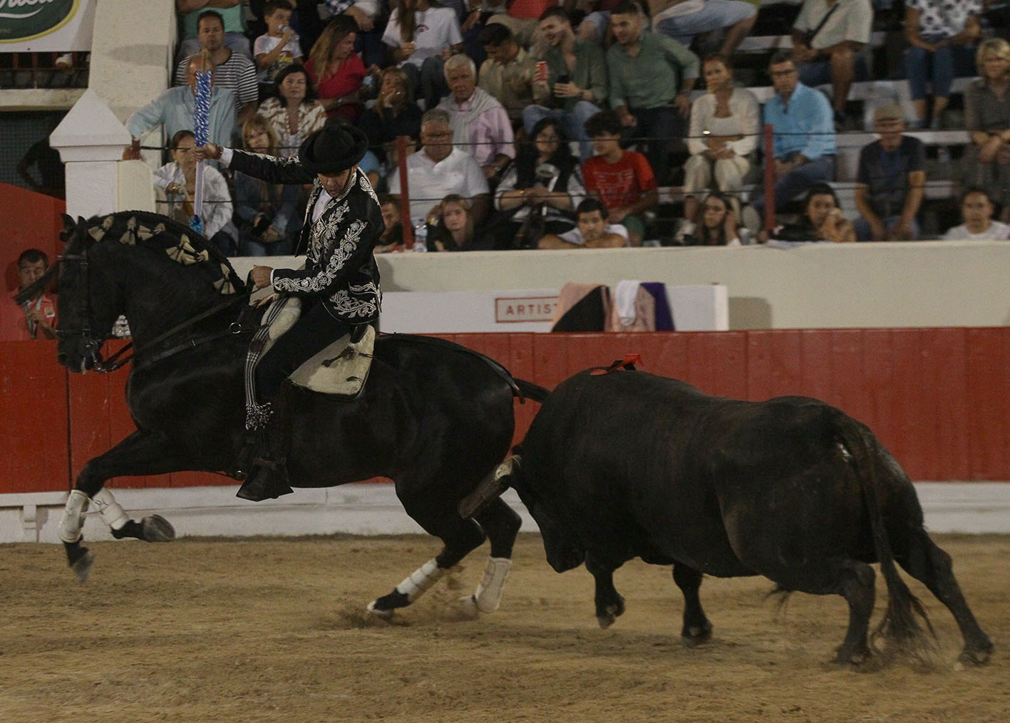 Segundo toro de la Ganadería de David Ribeiro Telles, número 9, 610 Kg, de nombre Romano: De salida JIBARO (2 farpas); en banderillas BERLIN (6 banderillas).