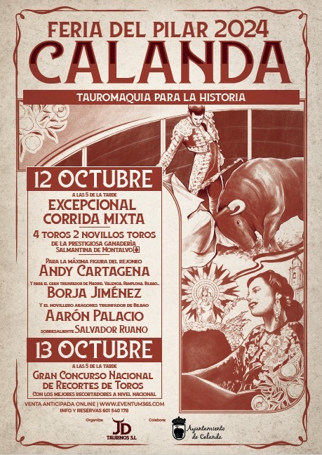 La empresa, dirigida por Daniel Garcés y Julio Fontecha, ha organizado un festejo mixto para el día del Pilar, que contará con la participación del rejoneador alicantino Andy Cartagena, quien abrirá plaza. Le seguirá el torero revelación de la temporada, Borja Jiménez, y cerrará el cartel una de las «ilusiones de Aragón», el joven novillero con caballos Aarón Palacio. Para este evento, se ha reseñado una corrida del hierro salmantino de Montalvo.