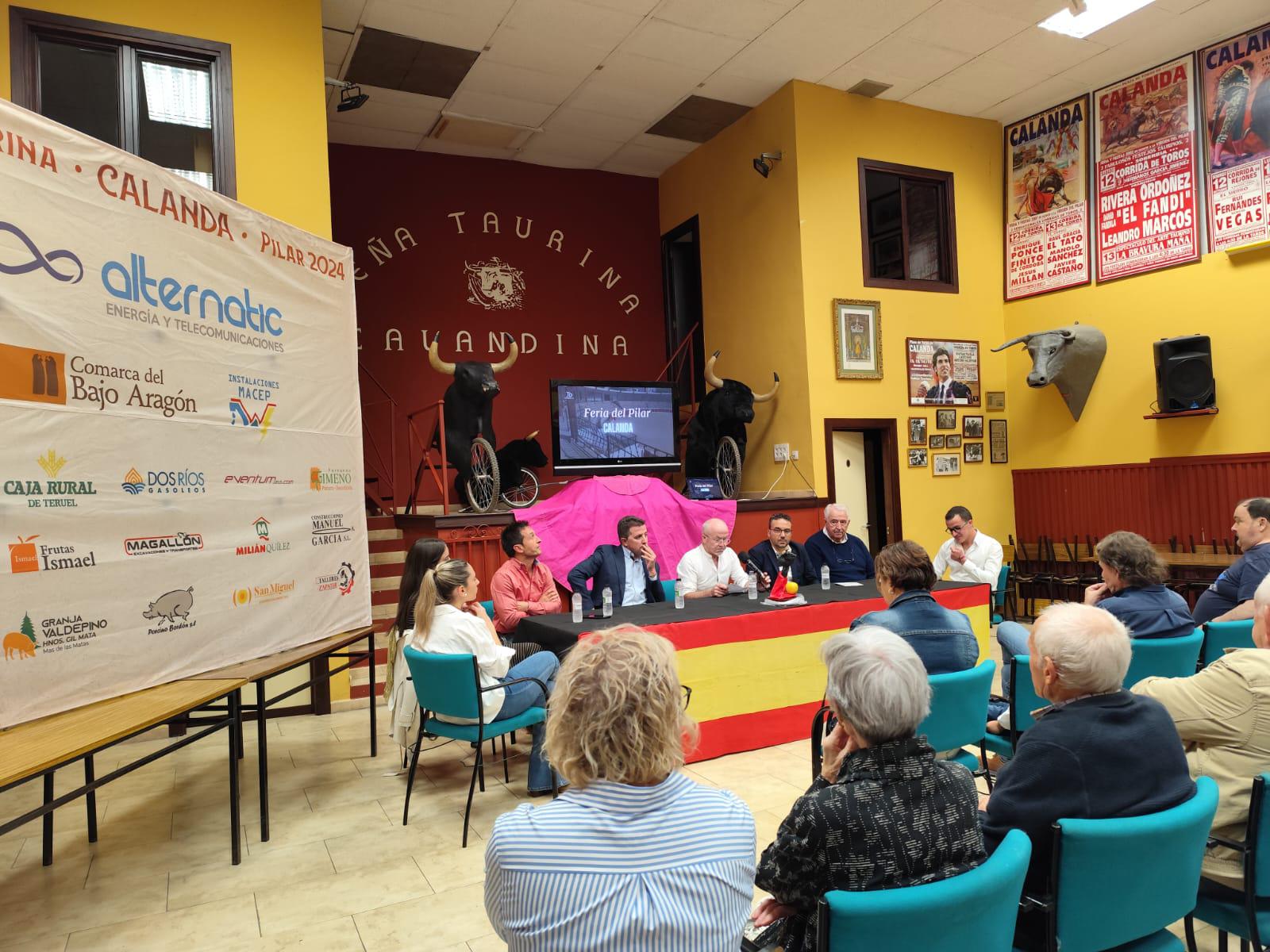 La empresa J.D. Taurinos presentó ayer por la tarde el cartel taurino que compone la Feria Taurina del Pilar en la localidad bajoaragonesa de Calanda, en los locales de la Peña Taurina Calandina, en un acto que contó con la presencia de los empresarios, el presidente de la peña taurina, las reinas de la peña, el alcalde de la localidad y el concejal de festejos taurinos.
