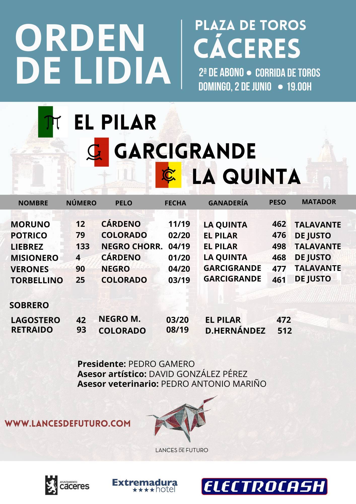 Este es el orden de lidia y las cuadrillas