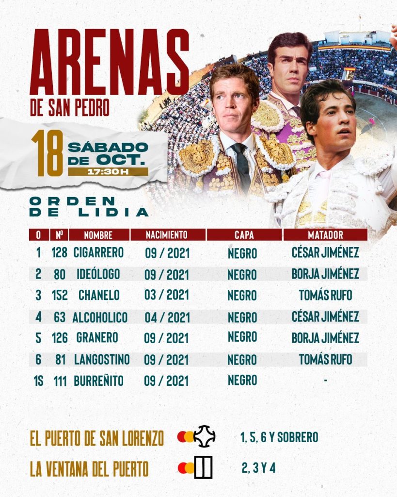 El orden de lidia es el siguiente: