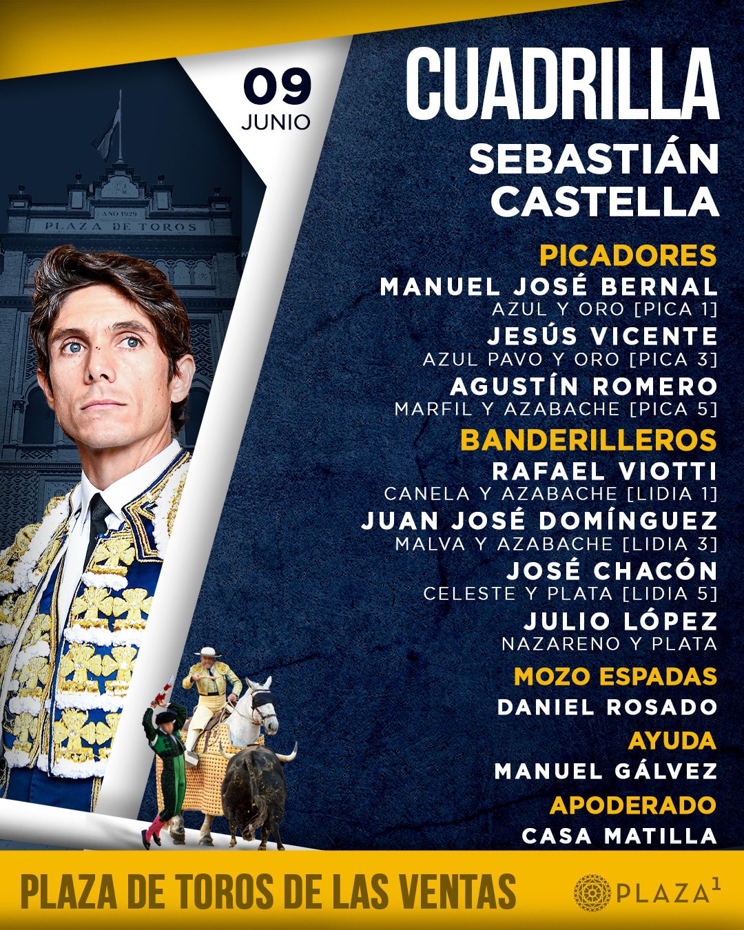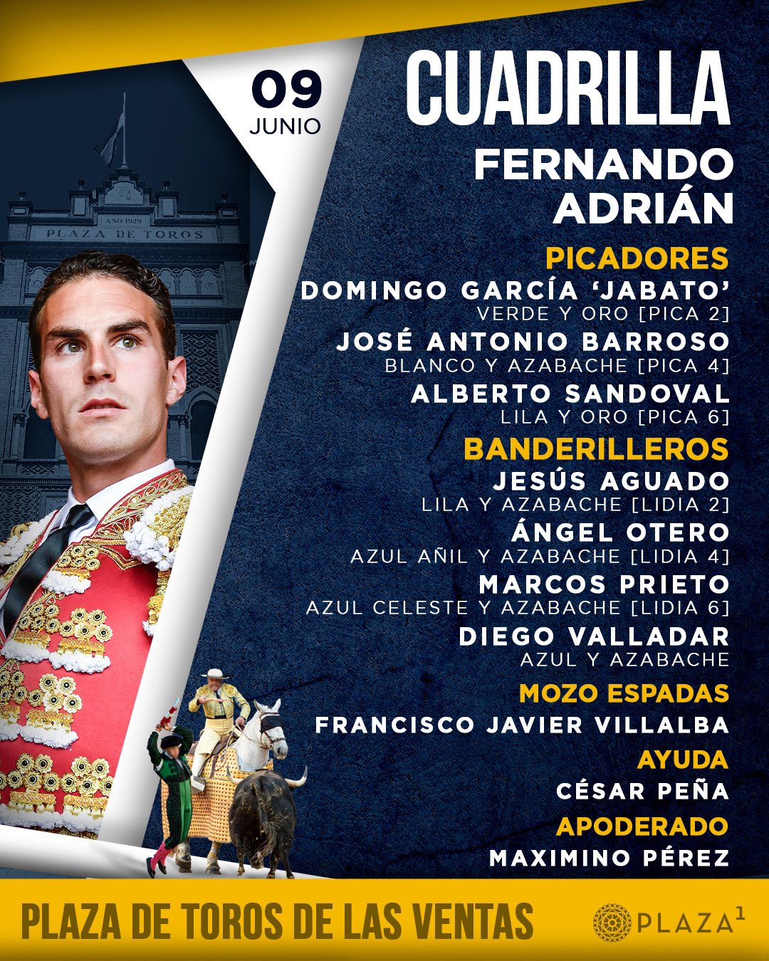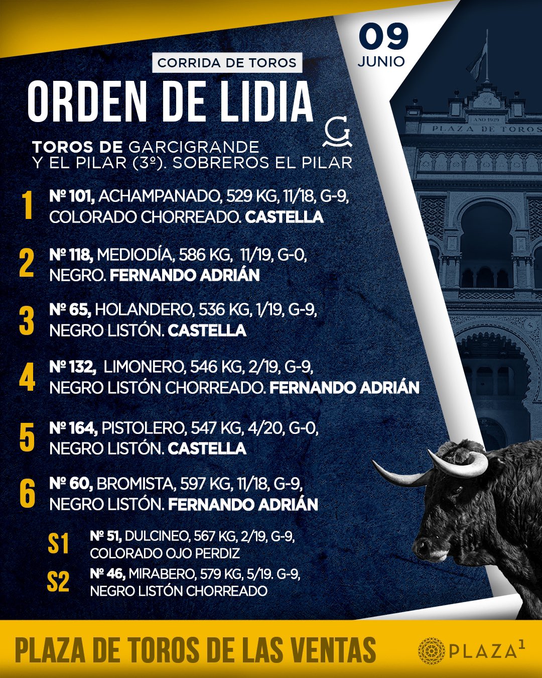 El orden de lidia y las cuadrillas son las siguientes: