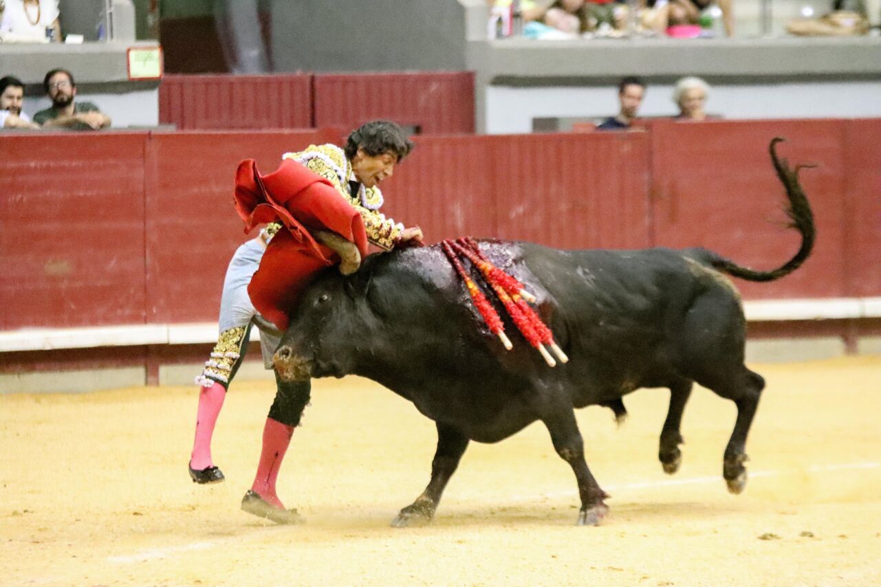 Curro Díaz sufrió una fea cogida en Burgos en el cuarto de la tarde a la hora de entrar a matar, sufriendo una cornada en el muslo derecho y cayendo feamente al suelo.