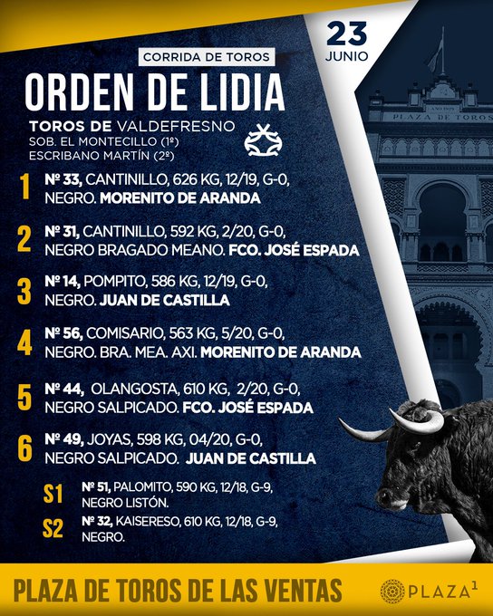El programa de mano, los toros, el orden de lidia, las cuadrillas, equipo gubernativo y veterinario, pasodobles… todo en un click.