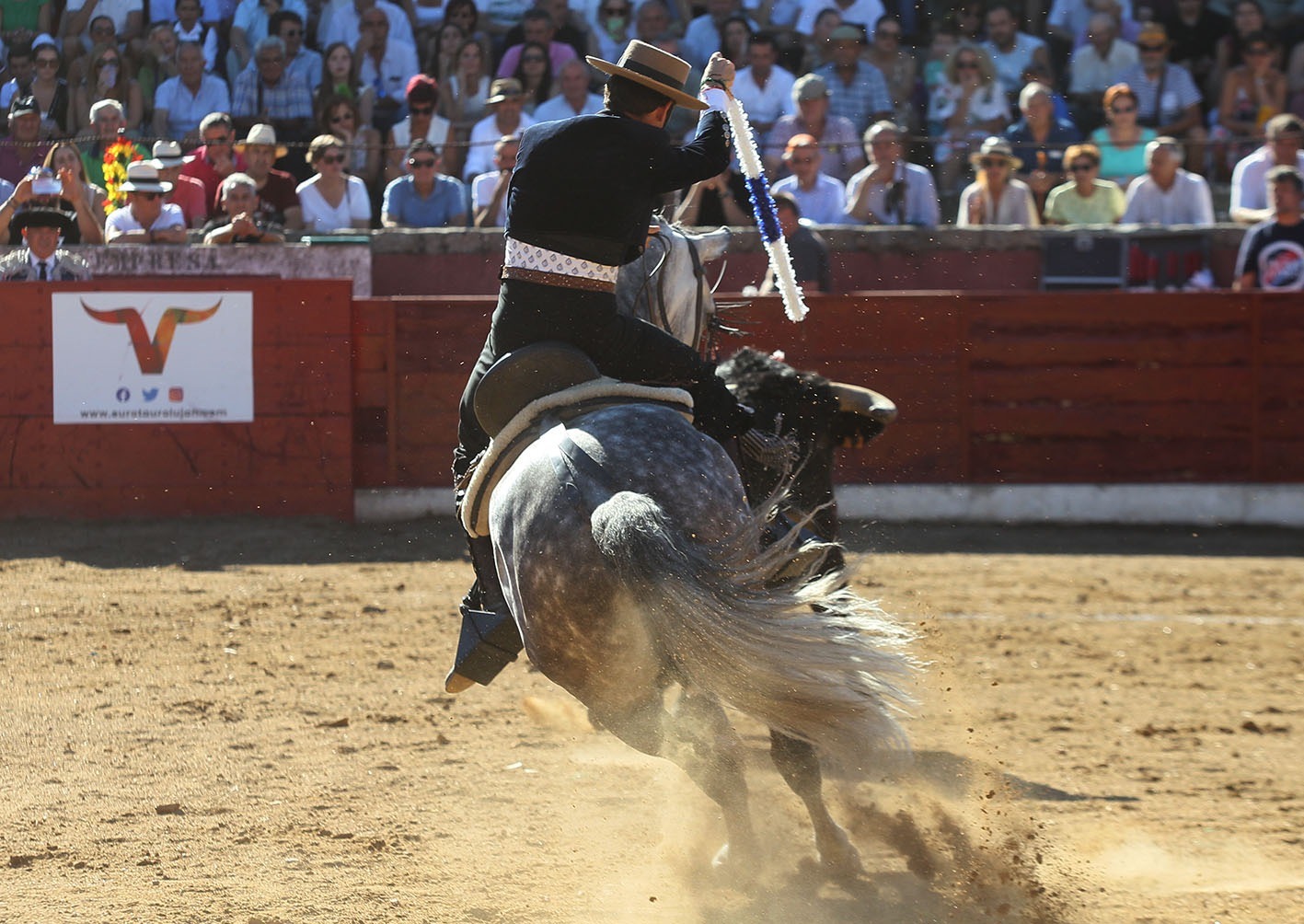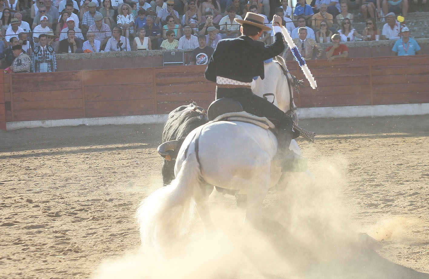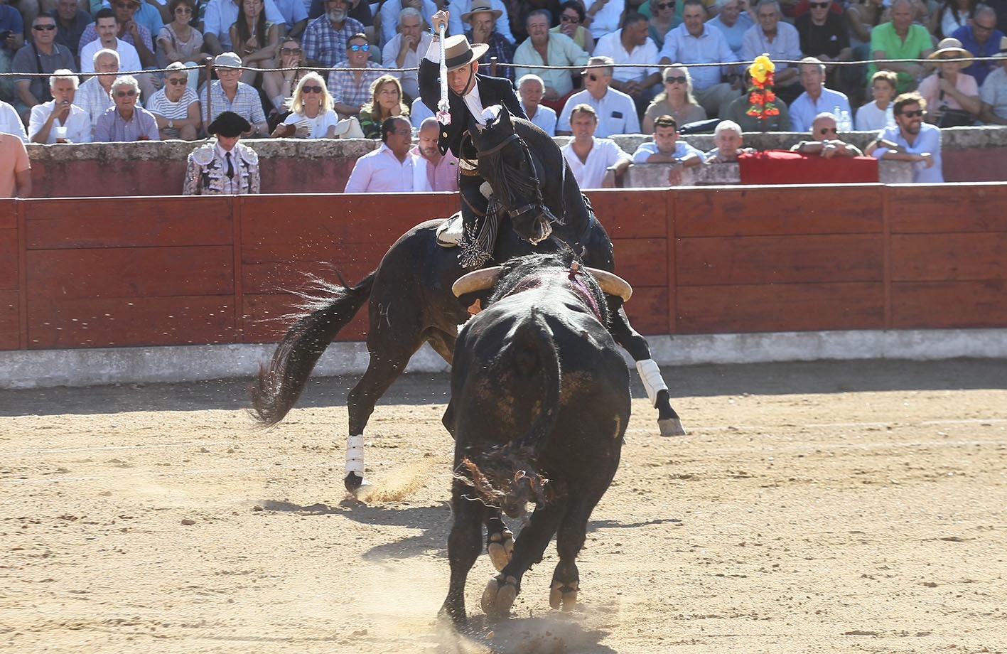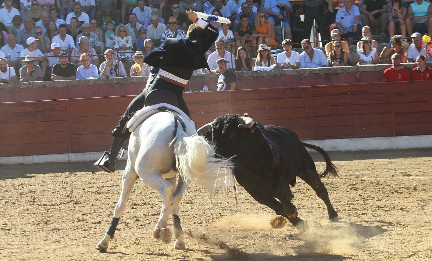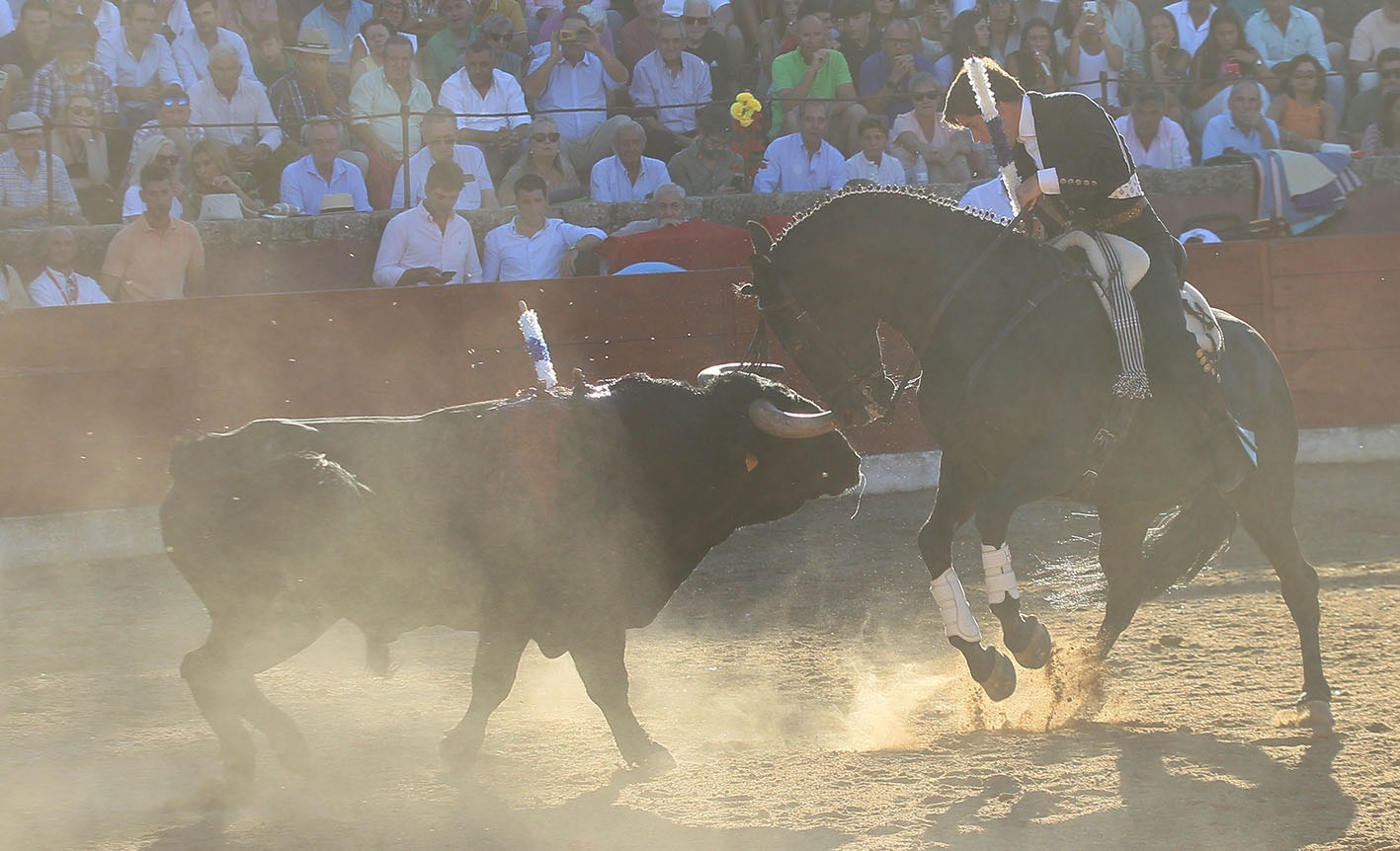 y espectacular y sorprendente en las piruetas. JEREZ rivalizó con el anterior en las reuniones al estribo. Para el último tercio el elegido fue FENIX, muy redondo tanto en las cortas como en la rosa,que clavó en los medios, y dejando un rejonazo de efectos fulminantes para cerrar una presentación de puerta grande.