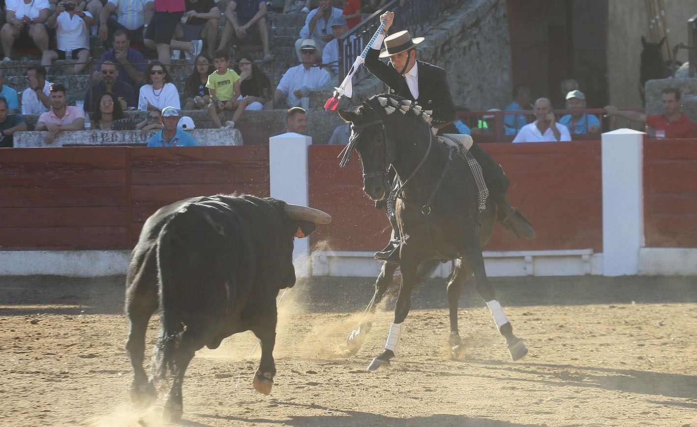 Todavía más arreado saltó Guillermo en el cuarto, otro buen ejemplar con el que el joven jinete volvió a hacer gala de la clase que atesora y del buen manejo de una cuadra con la que cada día está más compenetrado. Los rejones de castigo que colocó a lomos de JIBARO fueron un canto a la pureza, totalmente de frente, llegando a la misma cara para salir cuarteando y clavar arriba y al estribo.