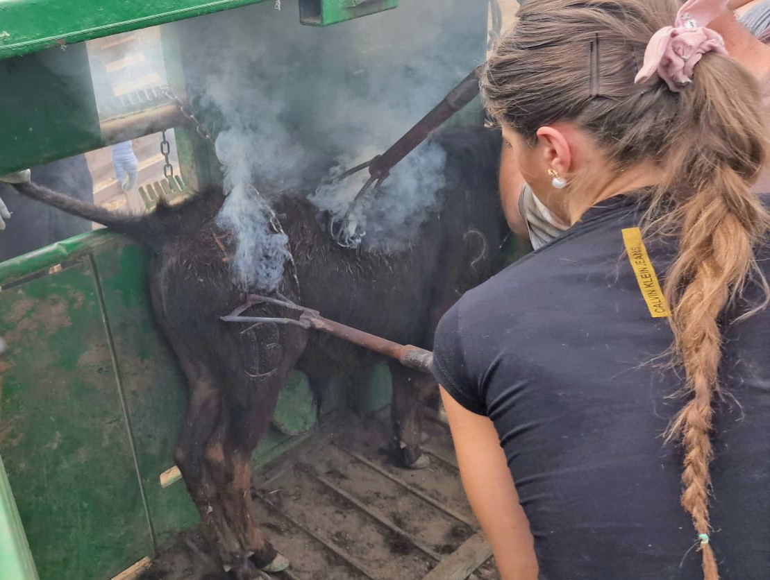 Allí, en la finca El Ontanal Patricia, hija y mano diestra en la vacada, mayoral y veterinario completaron la marca.
