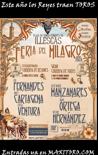 La empresa MaxiToro ha lanzado una campaña promocional bajo el lema: ‘Este año, los Reyes traen toros’, que invita a los aficionados y público general a regalar emociones únicas en ambos festejos de la Feria del Milagro de Illescas. La corrida de rejones, el domingo 8 de marzo, y la corrida de toros, el sábado 14 de marzo, se presentan como dos eventos imprescindibles en el arranque de campaña taurino.