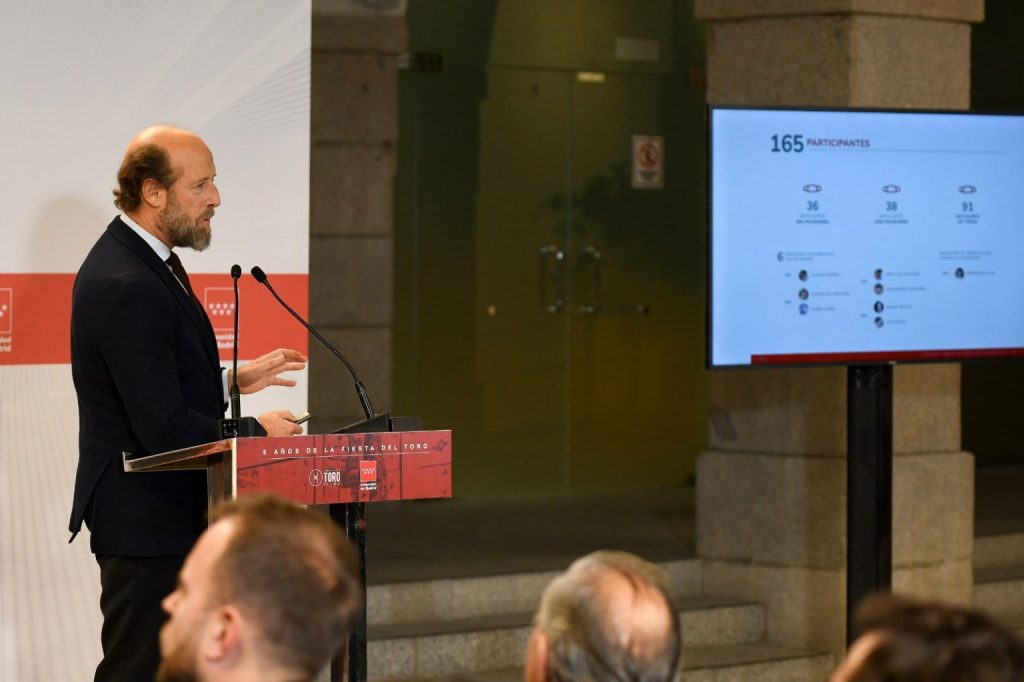 El consejero de Medio Ambiente, Agricultura e Interior, Carlos Novillo, ha asegurado que “han sido 5 años en los que el crecimiento del toro en la Comunidad de Madrid ha sido muy positivo, el trabajo con la Fundación Toro de Lidia ha estado marcado en llevar el toro a todos los rincones”.