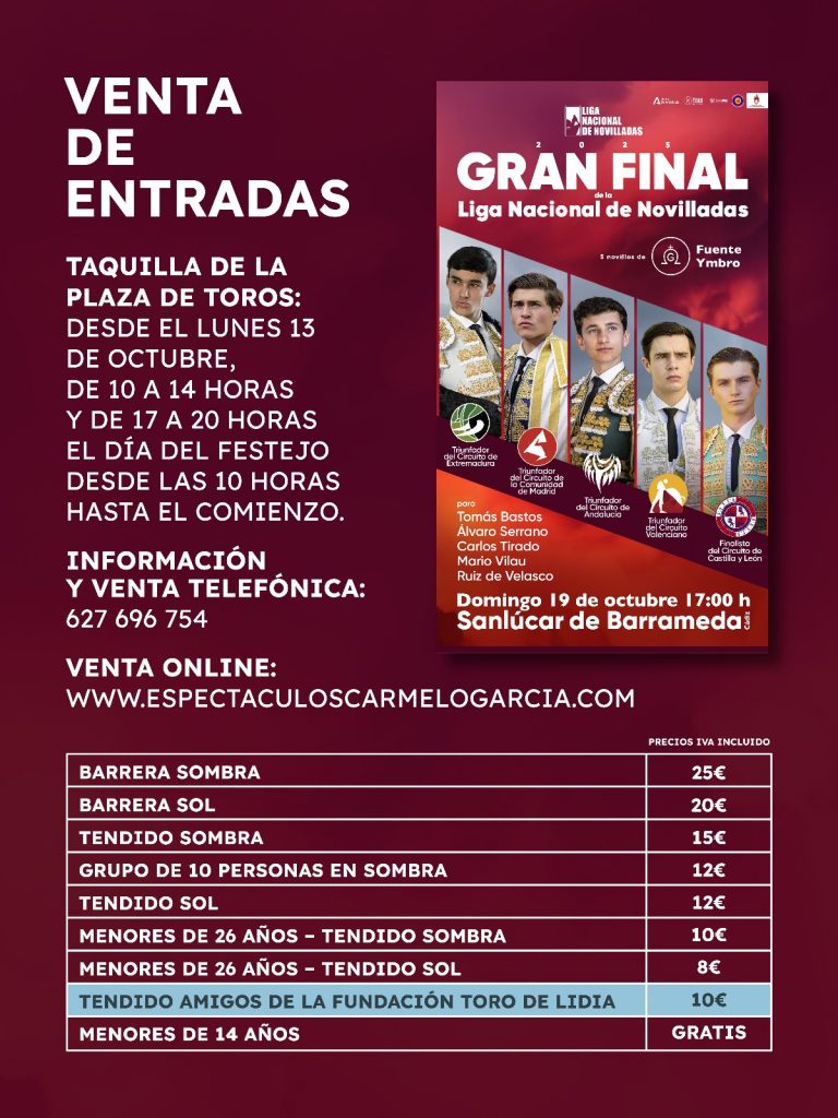 La liga Nacional de Novilladas 2025 buscará el triunfador absolutos con los triunfadores de los respectivos circuitos que lo componen. Tendrá lugar el 19 de octubre a las 17 horas con novillos del hierro de Fuente Ymbro.