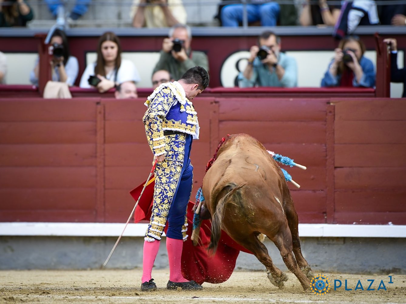 Plaza de toros de Las Ventas (Madrid, España). Domingo, 14 de abril de 2024. Novillada con picadores. Novillos de Hermanos Sánchez Herrero para los novilleros Borja Ximelis, Eduardo Neyra y Mario Navas. Entrada: 7103
