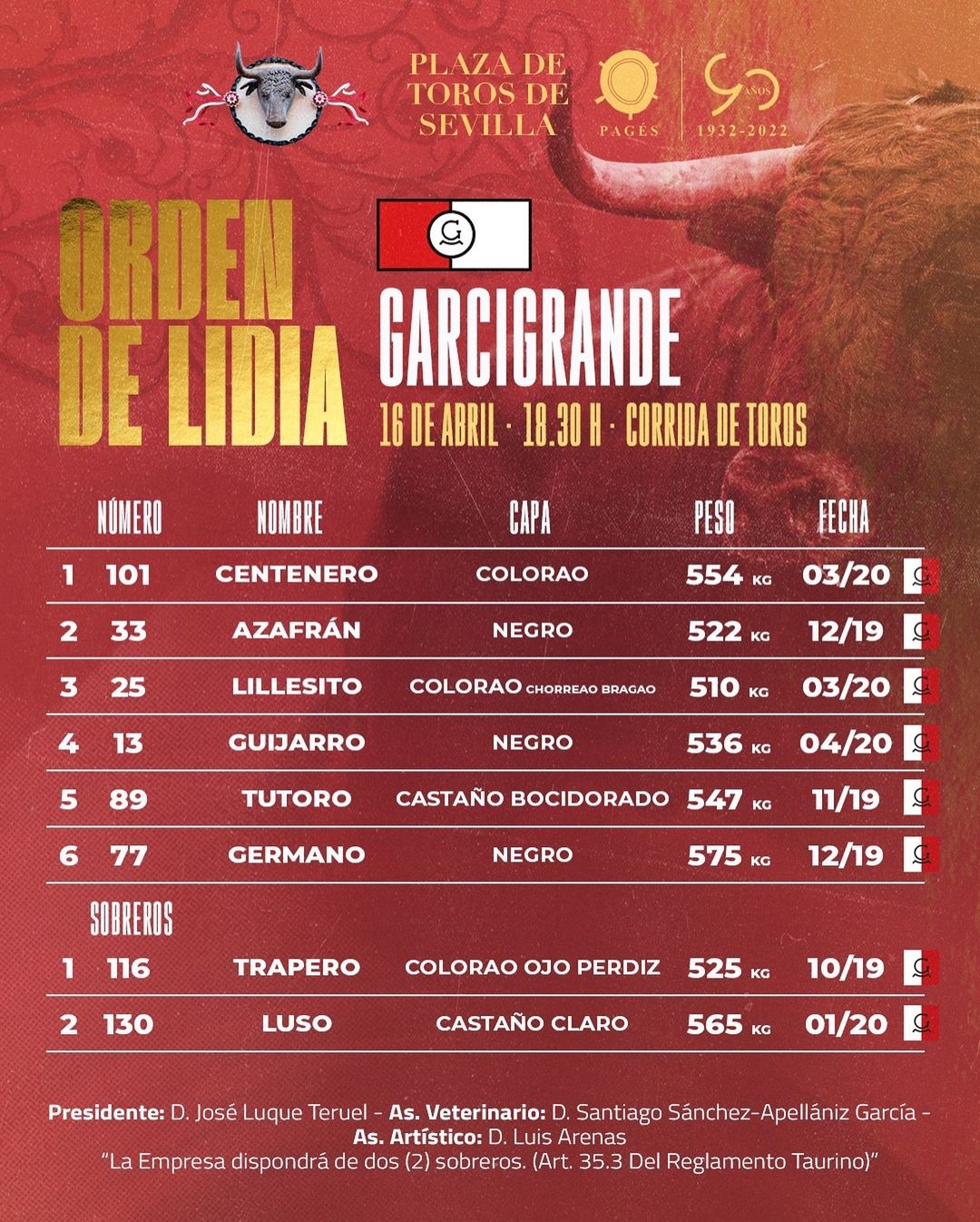 Ficha del festejo: