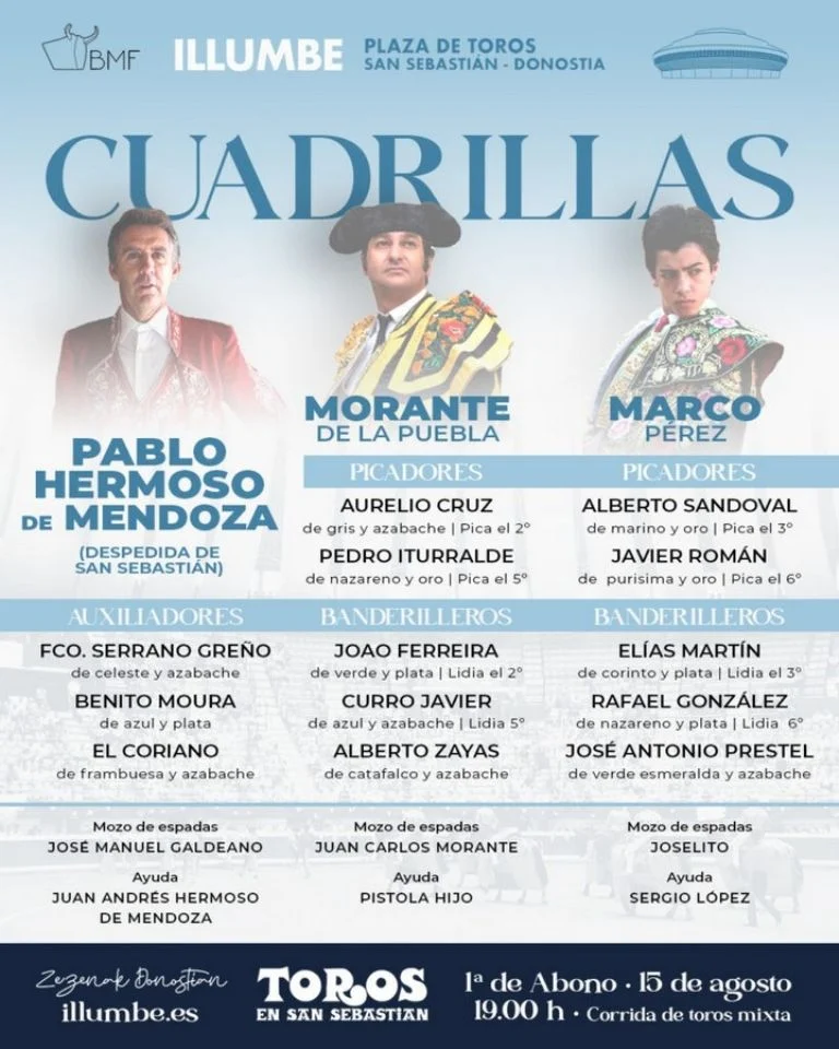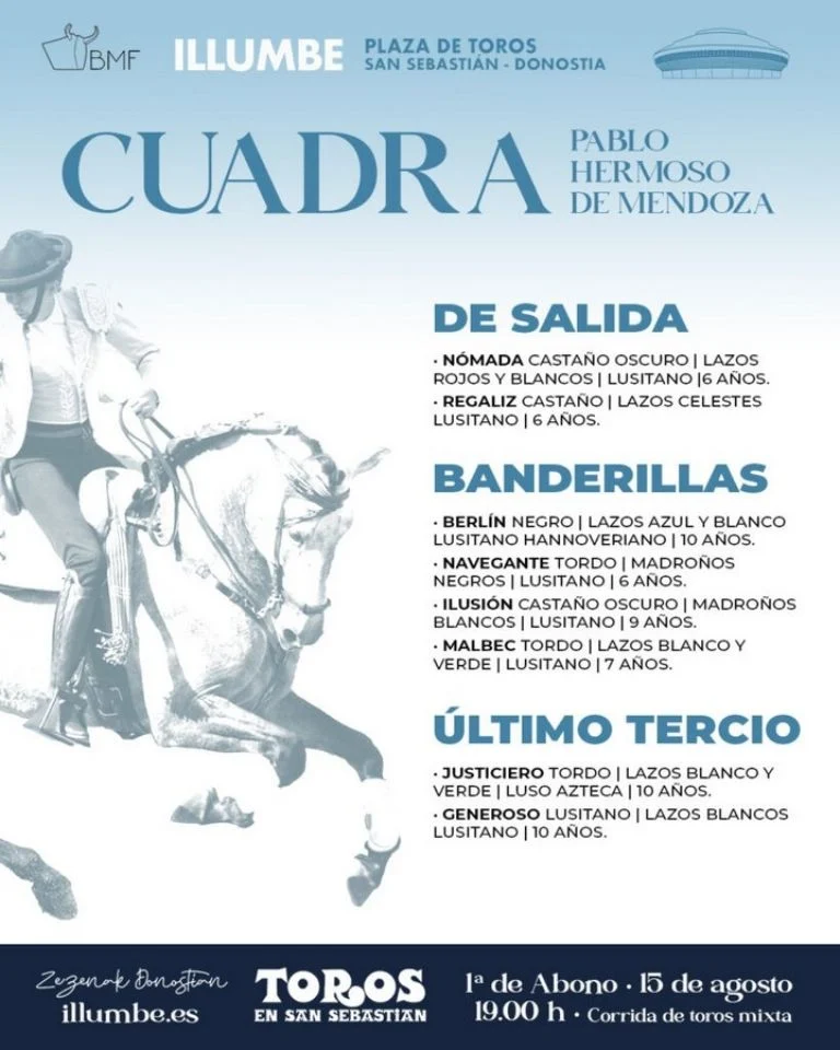 Enchiquerados los de El Capea, Juan Pedro Domecq y Núñez del Cuvillo que serán lidiados por Pablo Hermoso de Mendoza, Morante de la Puebla y Marco Pérez en la primera de San Sebastiá,.