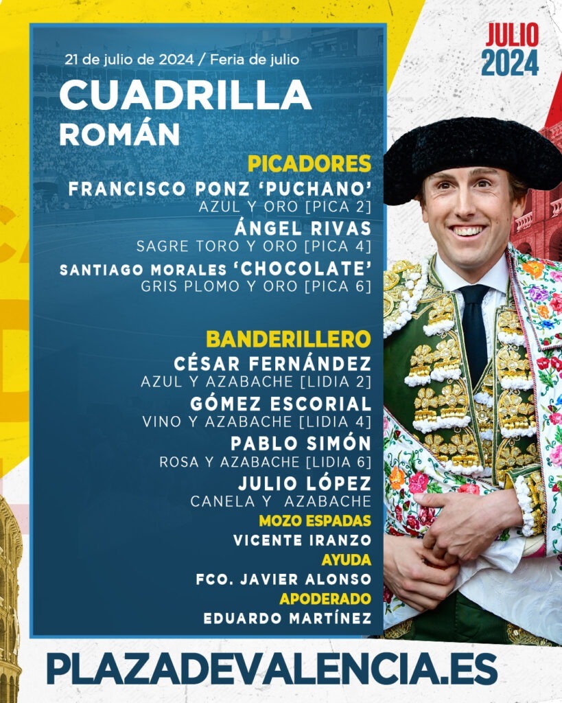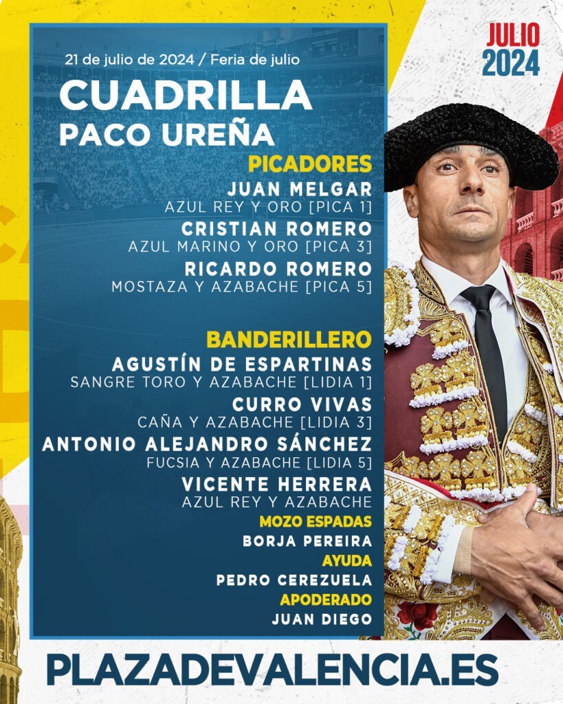 Los toros de Santiago Domecq que ponen el punto final a la Feria de Julio esta tarde en la Plaza de Toros de Valencia ya han sido sorteados y enchiquerados. Harán el paseíllo a las 20:00h. Paco Ureña y Román, que los lidiarán mano a mano.