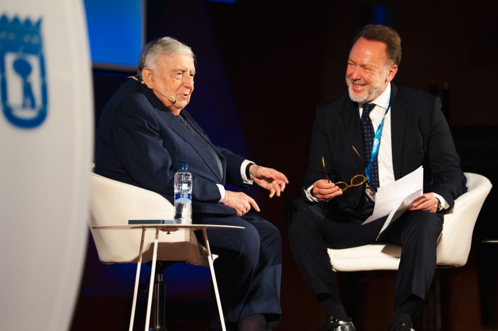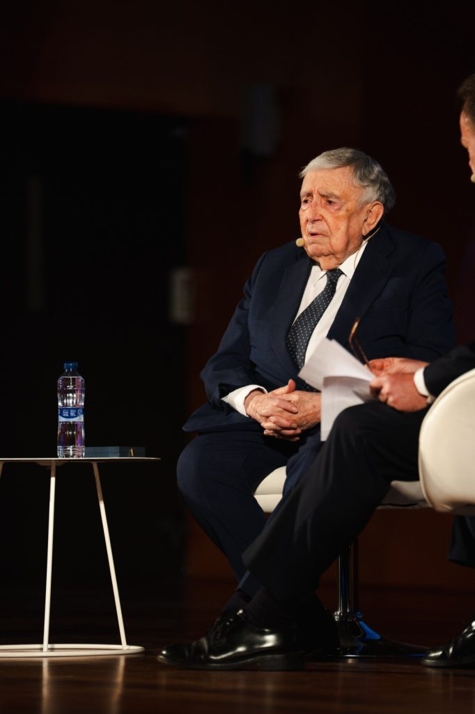 Luis María Anson ha agradecido el obsequio y ha comenzado definiéndose como “un obrero de las palabras, con 91 años sigo con el periódico y si Dios quiere, me moriré trabajando”.