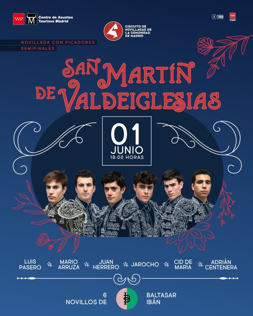 • San Martín de Valdeiglesias (1 de junio): Novillos de Baltasar Ibán para Luis Pasero, Mario Arruza, Juan Herrero, Jarocho, Cid de María y Adrián Centenera.