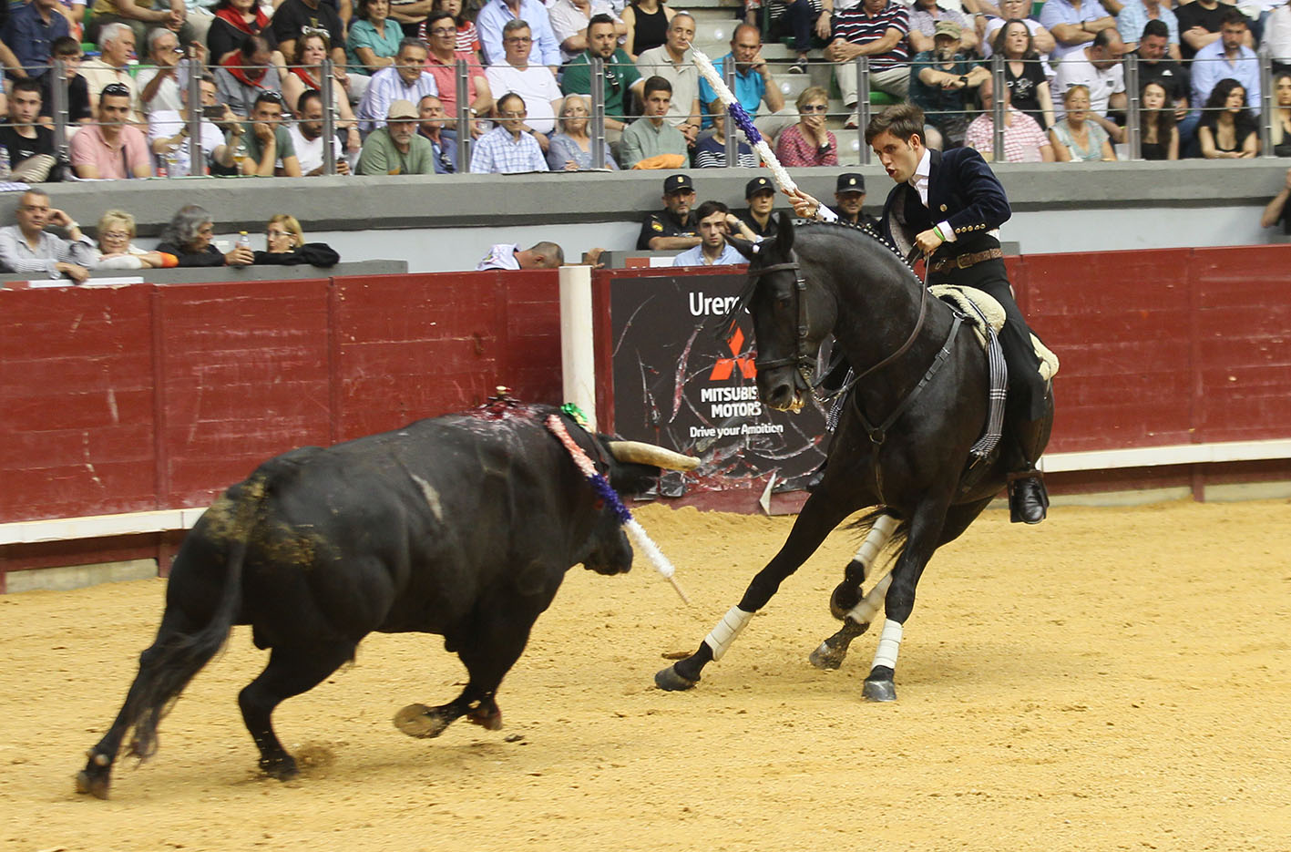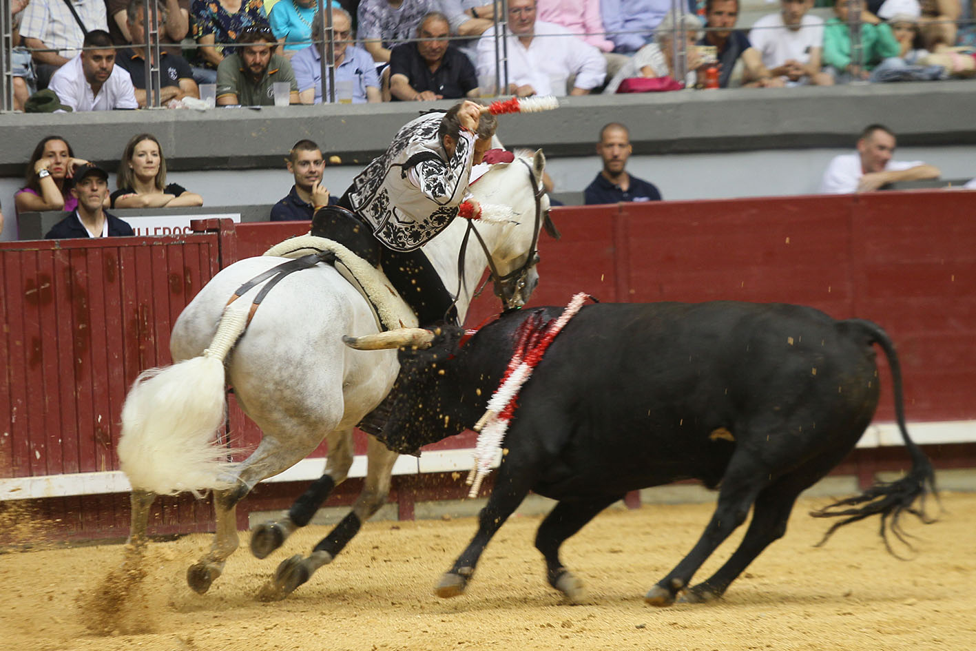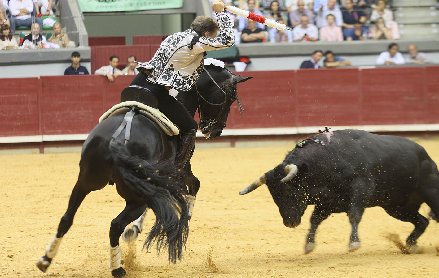 Pablo Hermoso de Mendoza se fue a pie a pesar de haber realizado la mejor faena de la tarde, que precisamente fue la única que se quedó sin premio. Una labor templada, de mucha calidad, toreando muy espacio con Talento al que podemos decir fue el único toro de la tarde que se dejo hacer algo. Pablo lo aprovechó, pero lo pinchó y tuvo que escuchar el silencio del respetable.
