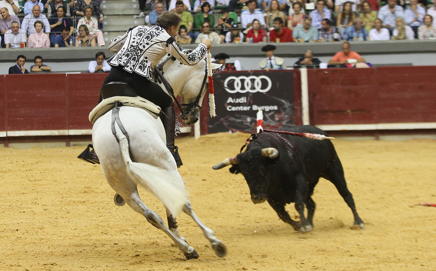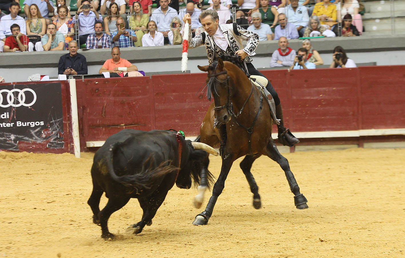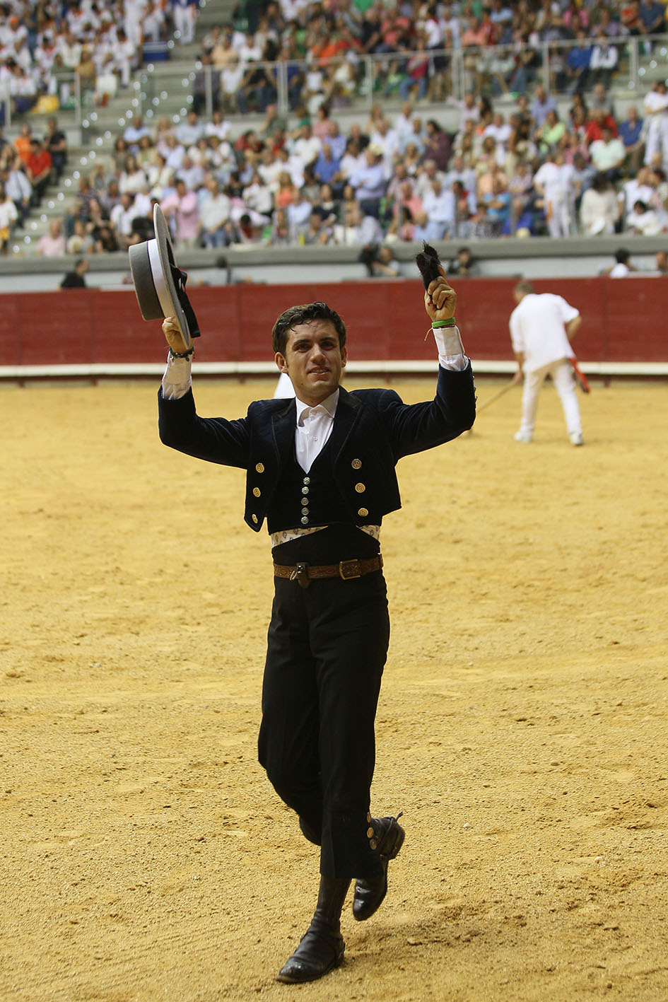 Pablo Hermoso de Mendoza se fue a pie a pesar de haber realizado la mejor faena de la tarde, que precisamente fue la única que se quedó sin premio. Una labor templada, de mucha calidad, toreando muy espacio con Talento al que podemos decir fue el único toro de la tarde que se dejo hacer algo. Pablo lo aprovechó, pero lo pinchó y tuvo que escuchar el silencio del respetable.