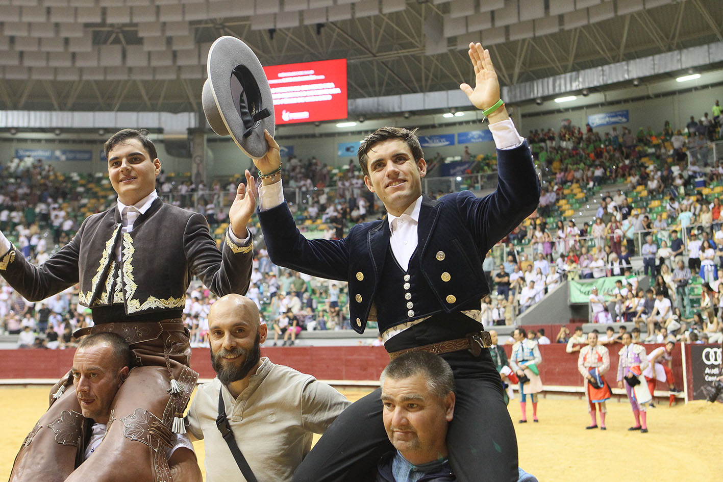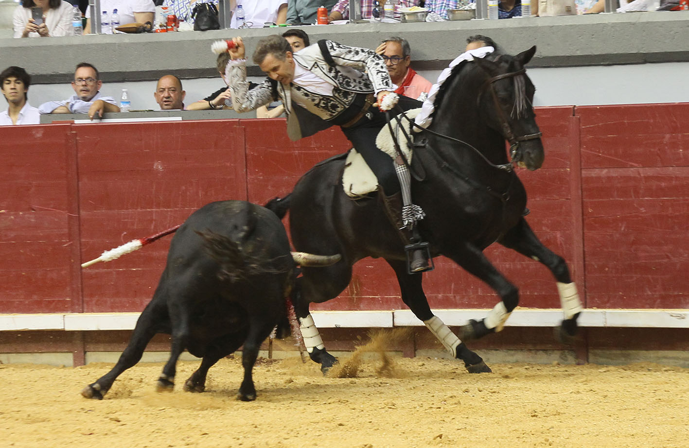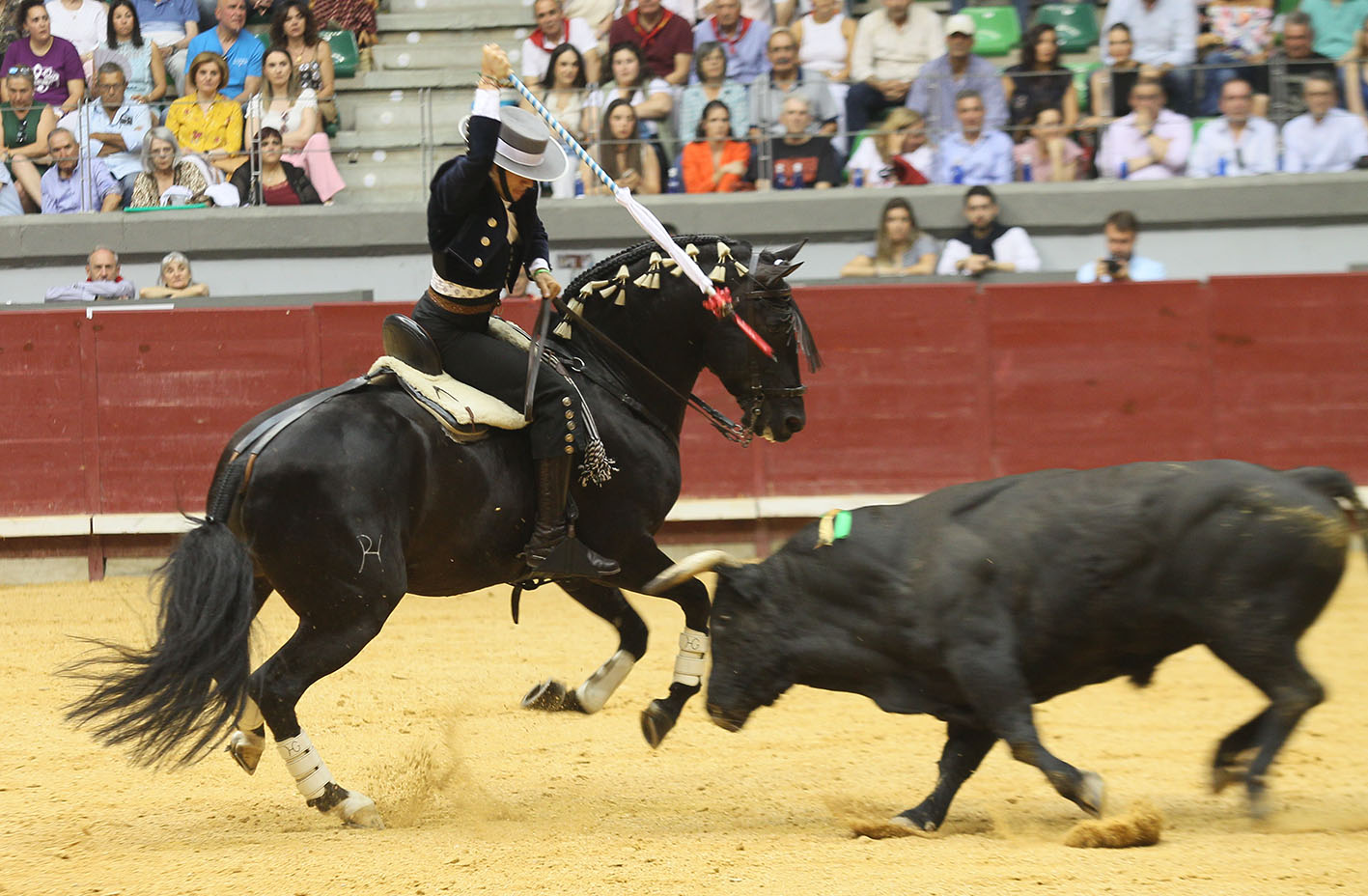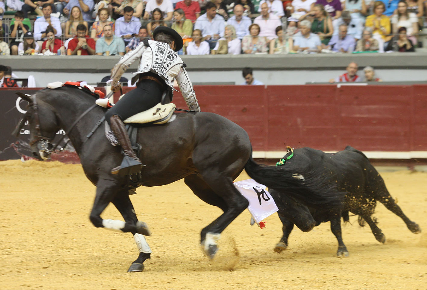 El resto de la corrida, con orejas para todos, fue de toros infumables para los caballeros, aunque podemos decir que para la gente, como se movieron, resultaron entretenidos. Lo cierto es que todos se rajaron, se fueron a tablas y allí esperaban para lanzar unas embestidas rabiosas y bruscas. Los Hermoso de Mendoza bastante tenían con dejar los palos y salir limpios de los embroques y aun así, ponían alguna pincelada como galopes de costado, quiebros o piruetas.