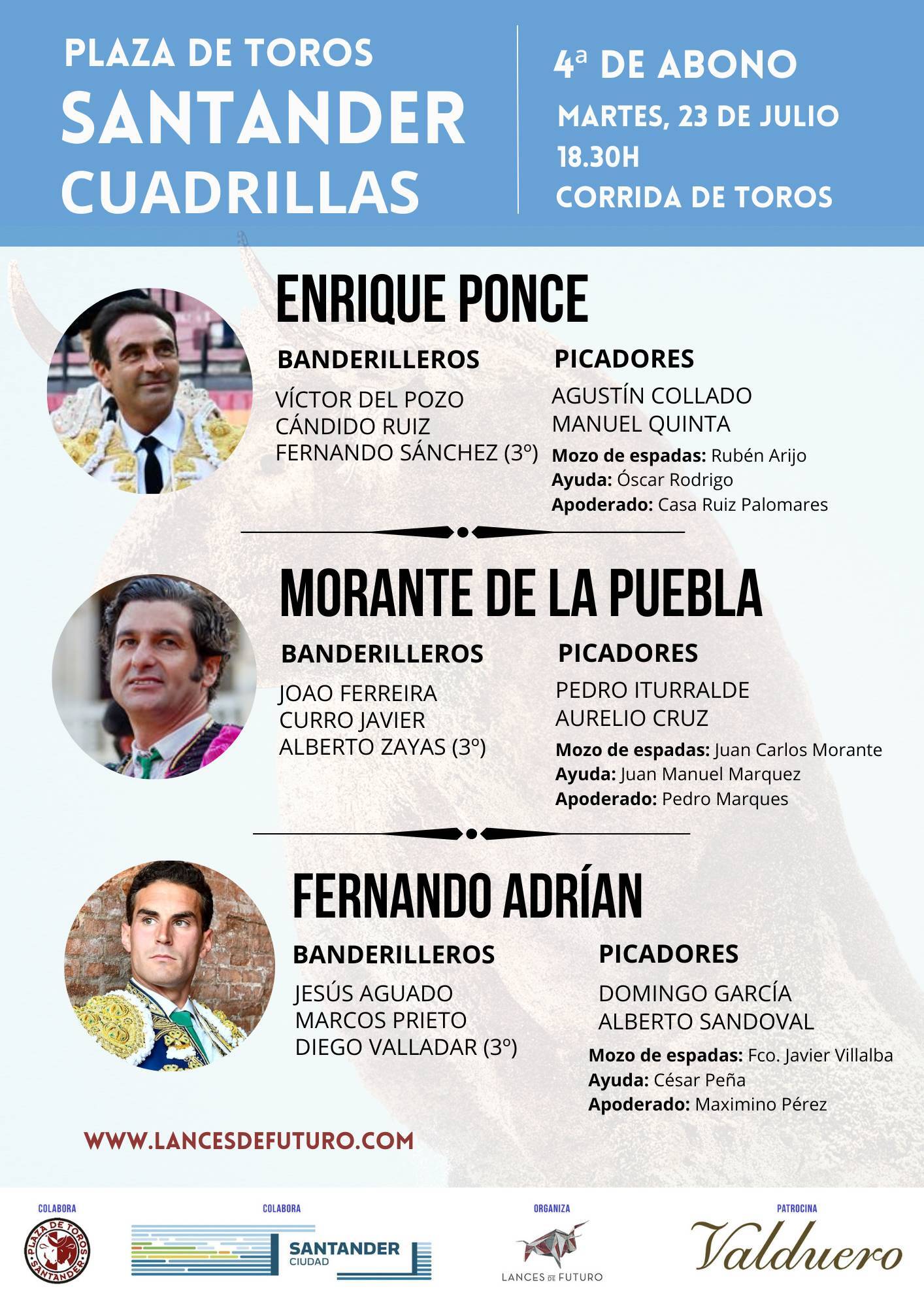 Sorteados y enchiquerados los toros de Domingo Hernández que serán lidiados en la Plaza de Toros de Santander por la terna compuesta por Enrique Ponce, Morante de la Puebla y Fernando Adrián. El festejo comenzará a las 18:30 h.