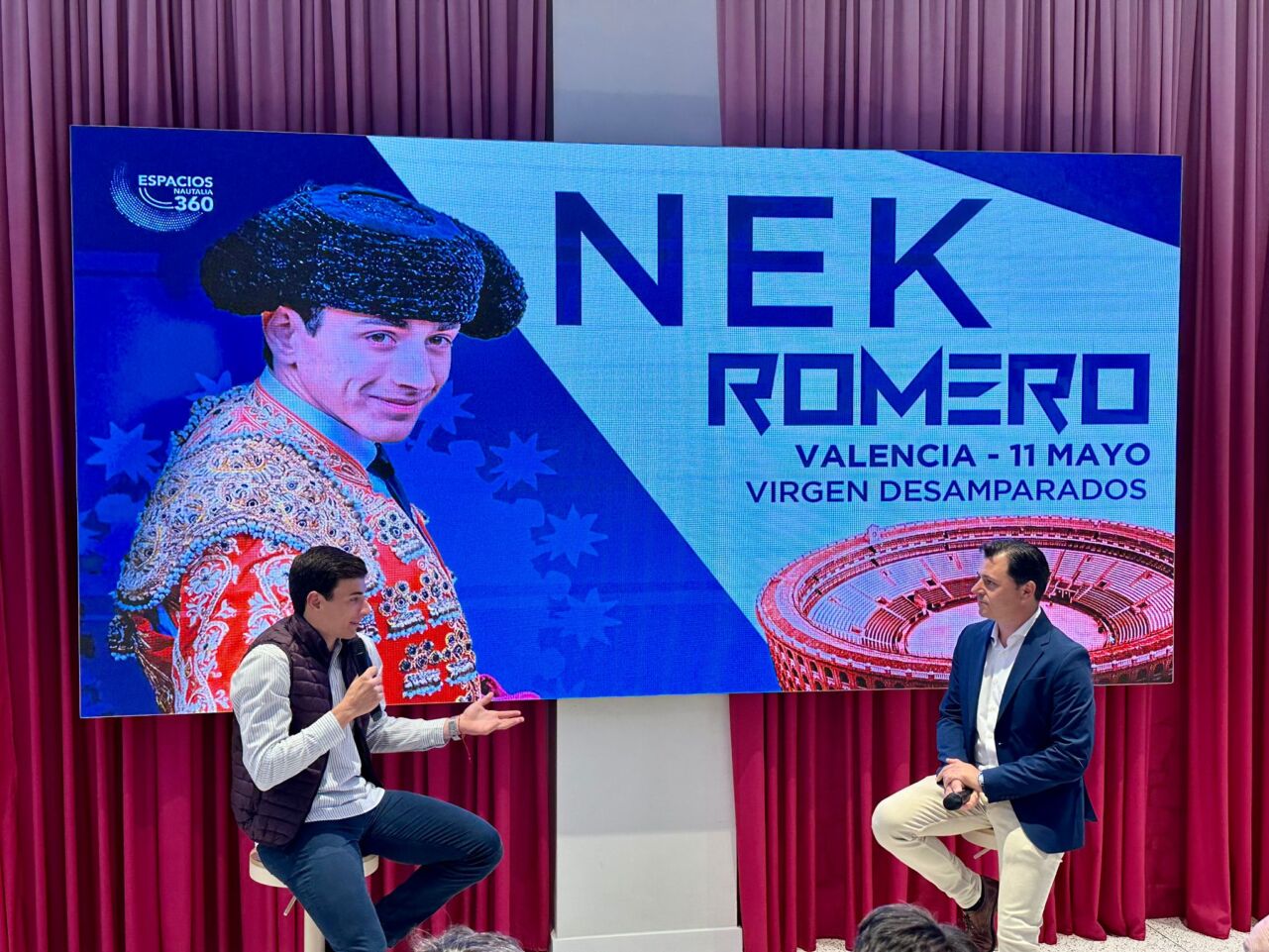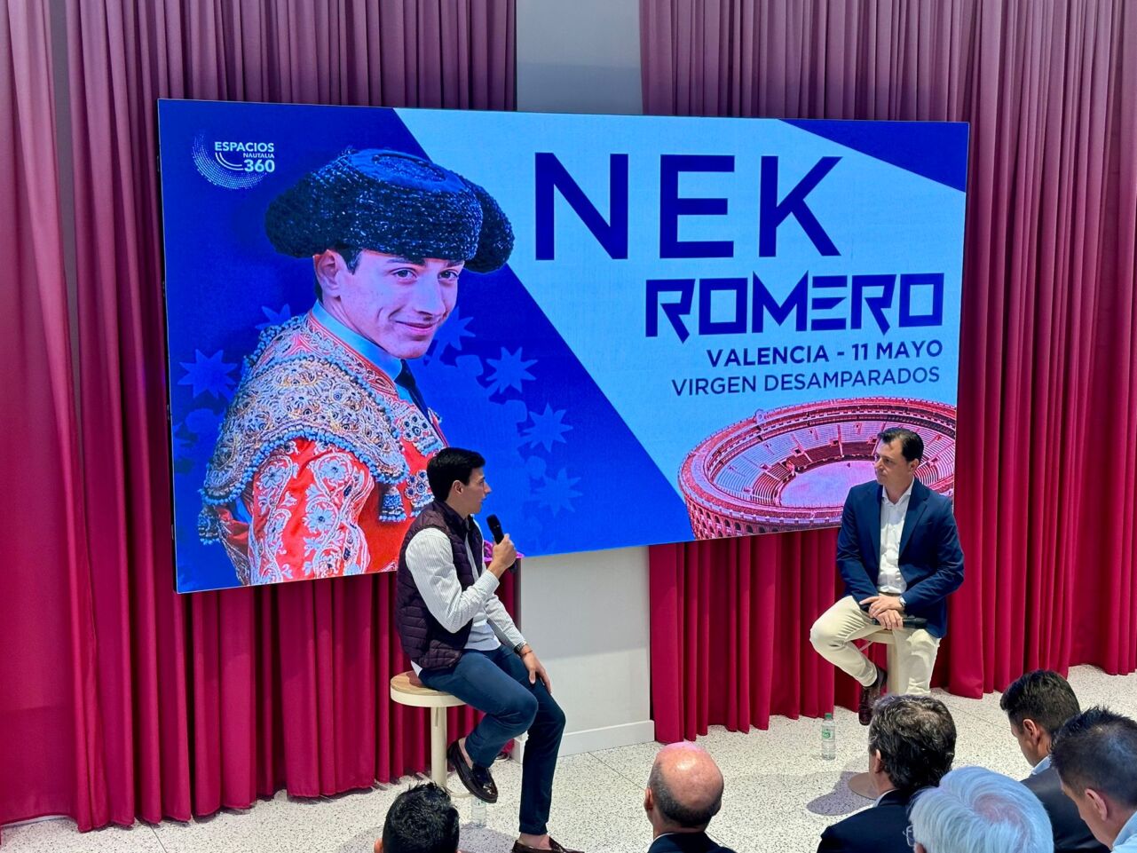 La nueva sede de Nautalia Viajes en la calle Conde de Altea de la capital valenciana, ha sido testigo este lunes de un bonito encuentro entre el novillero de Algemesí Nek Romero y la afición de Valencia. El evento, presentado por el periodista Jorge Casals, ha contando con la presencia de Javier Montero, secretario autonómico de Seguridad y Emergencias de la diputación; Toni Gázquez, director del centro de asuntos taurinos de la diputación de Valencia, y Víctor Zabala de la Serna, gerente de Espacios Nautalia 360, entre otros, junto a multitud de rostros conocidos del mundo del toro y aficionados.