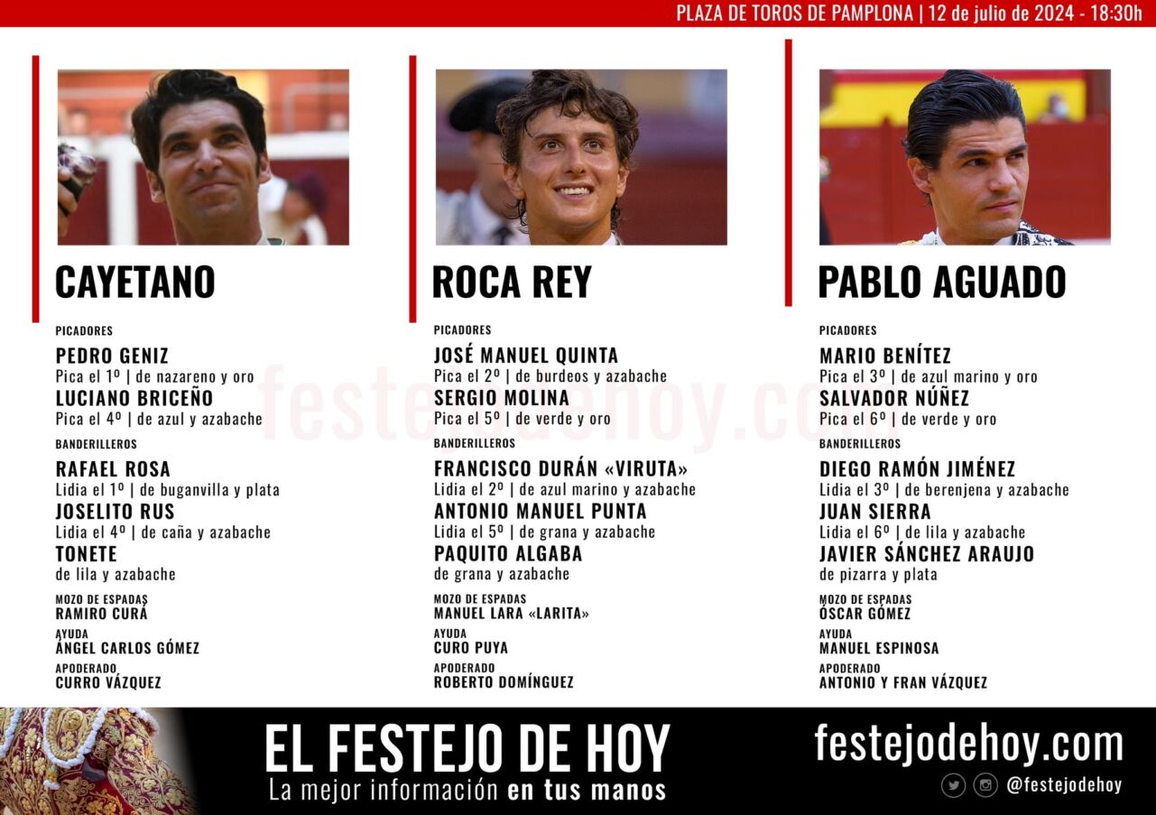 El orden de lidia y las cuadrillas son las siguientes: