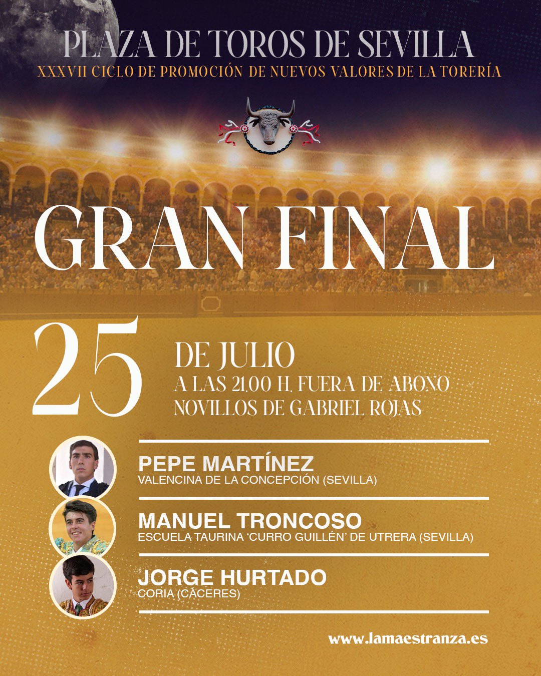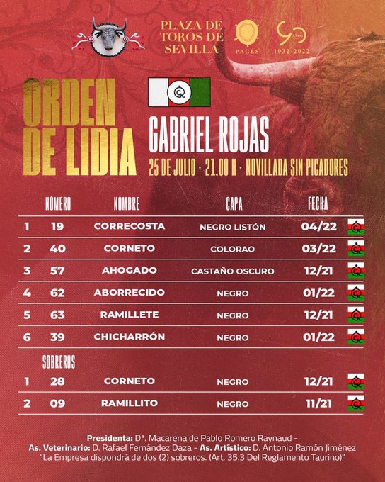 Ya se ha realizado el sorteo de los novillos de Gabriel Rojas que esta noche se lidiarán en la Final de las Novilladas de Promoción 2024 en Sevilla. El cartel lo componen Pepe Martínez, Manuel Troncoso y Jorge Hurtado. La novillada sin picadores comienza a las 21.00 horas.