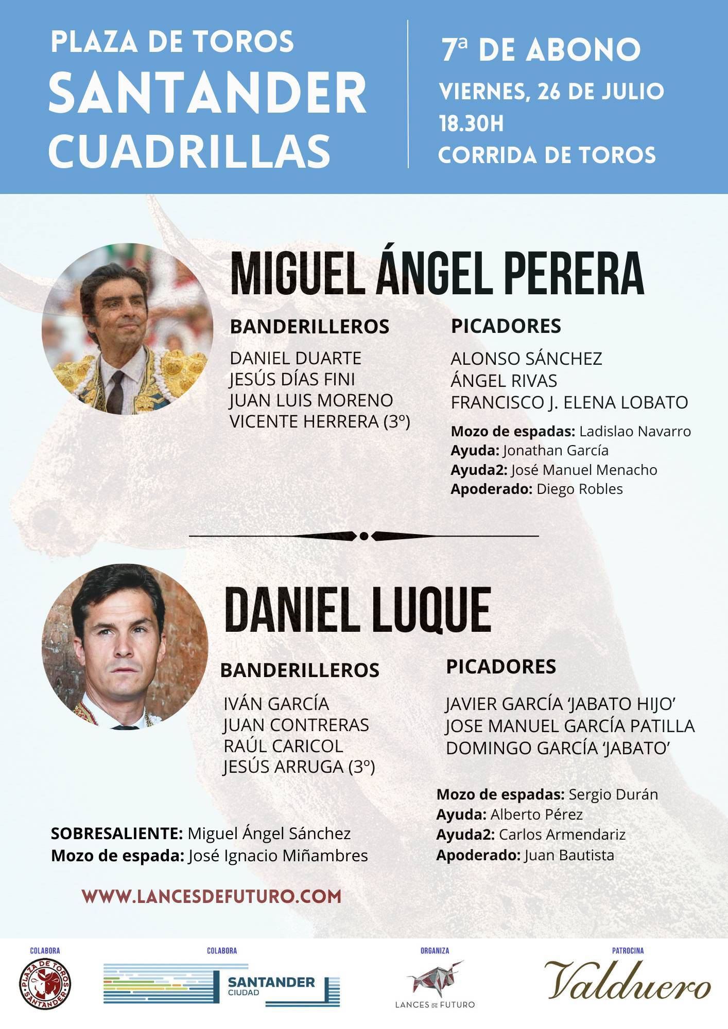 El orden de lidia y las cuadrillas son estas: