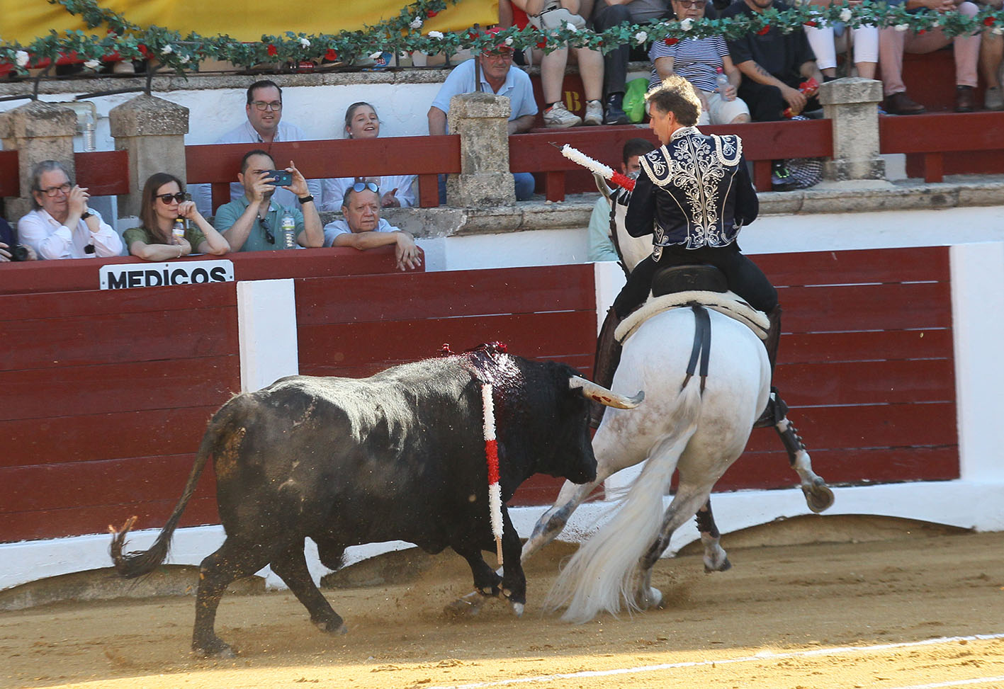 Afortunadamente el cuarto de la tarde fue otra cosa y permitió a Hermoso de Mendoza gozar y hacer disfrutar a un público que estuvo entregado toda la actuación. Salió entregado el toro y pronto buscó a