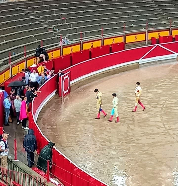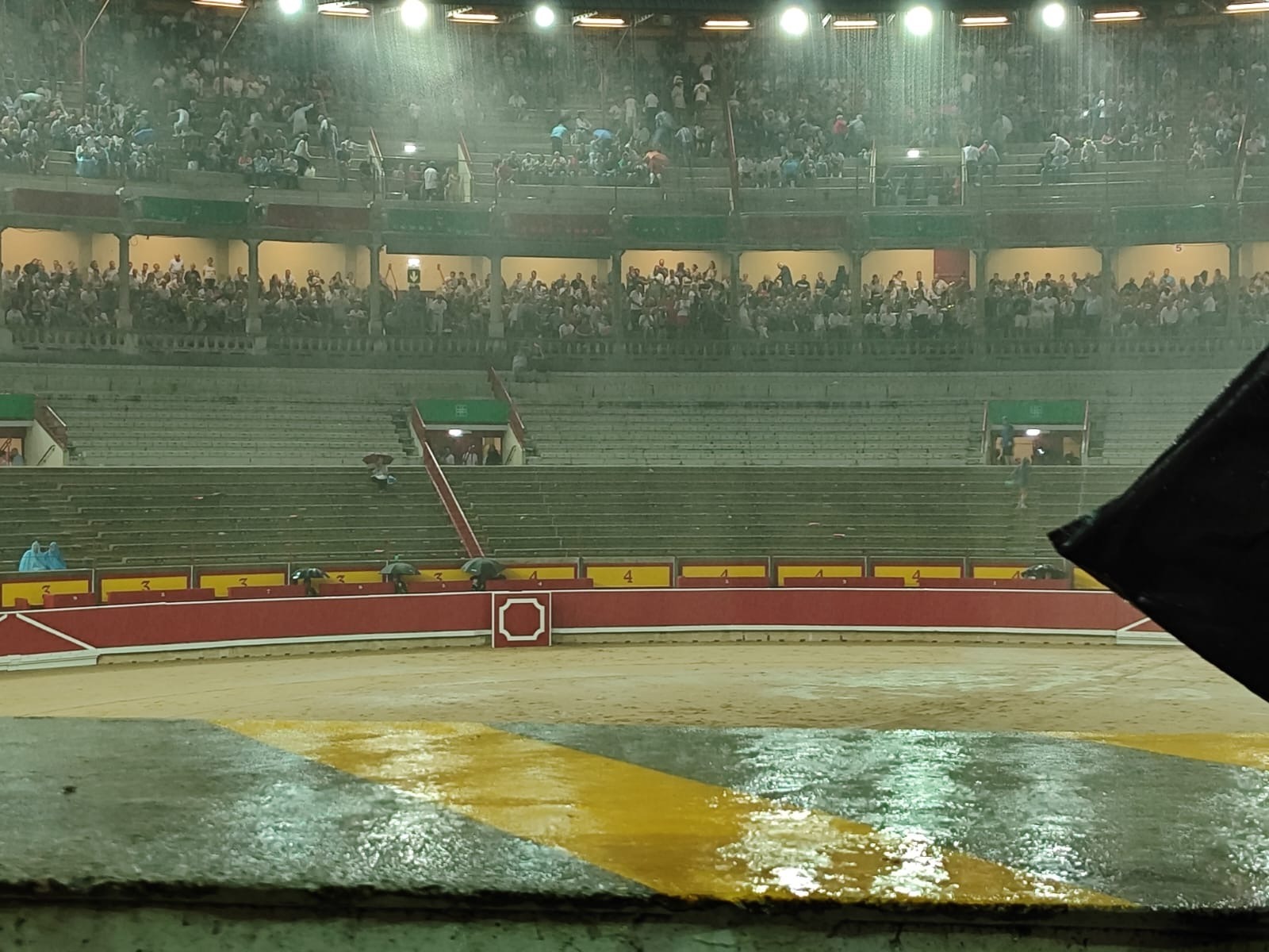 Fue una verdadera pena que el diluvio obligará a suspender la novillada de la Feria de San Fermín 2024. Los novilleros querían torear, pero el ruedo estaba imposible y la tromba que se desarrolló durante el segundo y en adelante, era importante.