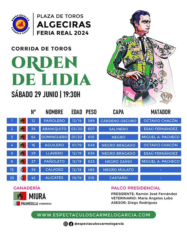 Los toros de Miura ya han sido enlotados, sorteados y enchiquerados a expensas de ser lidiados esta tarde en el último festejo de la Feria Real de Algeciras 2024.