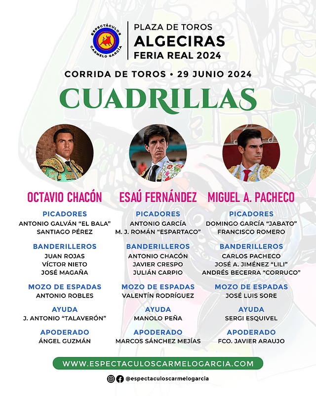 Una importante corrida en el Coso de Las Palomas que está compuesta por Octavio Chacón, Esaú Fernández y Miguel Ángel Pacheco.