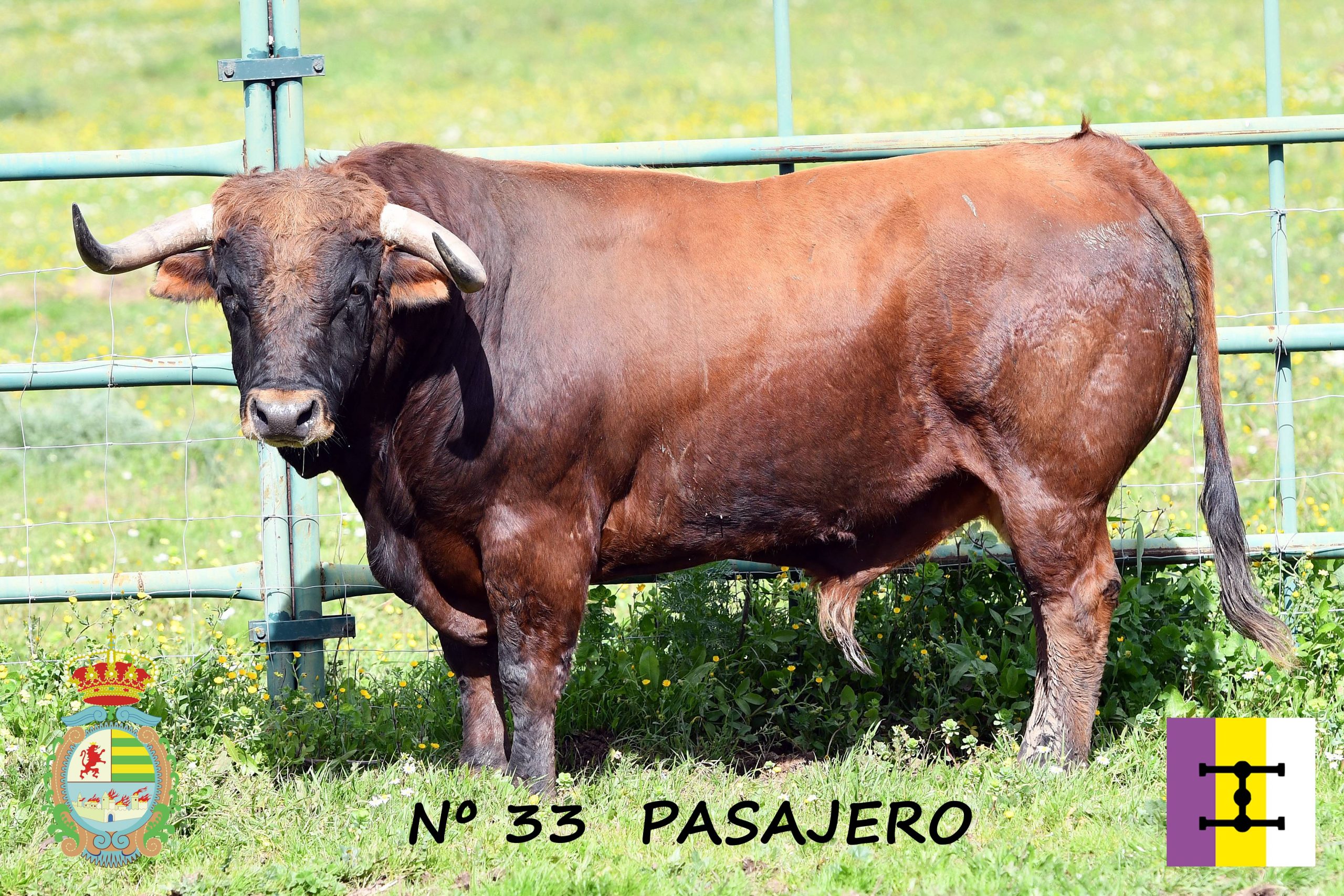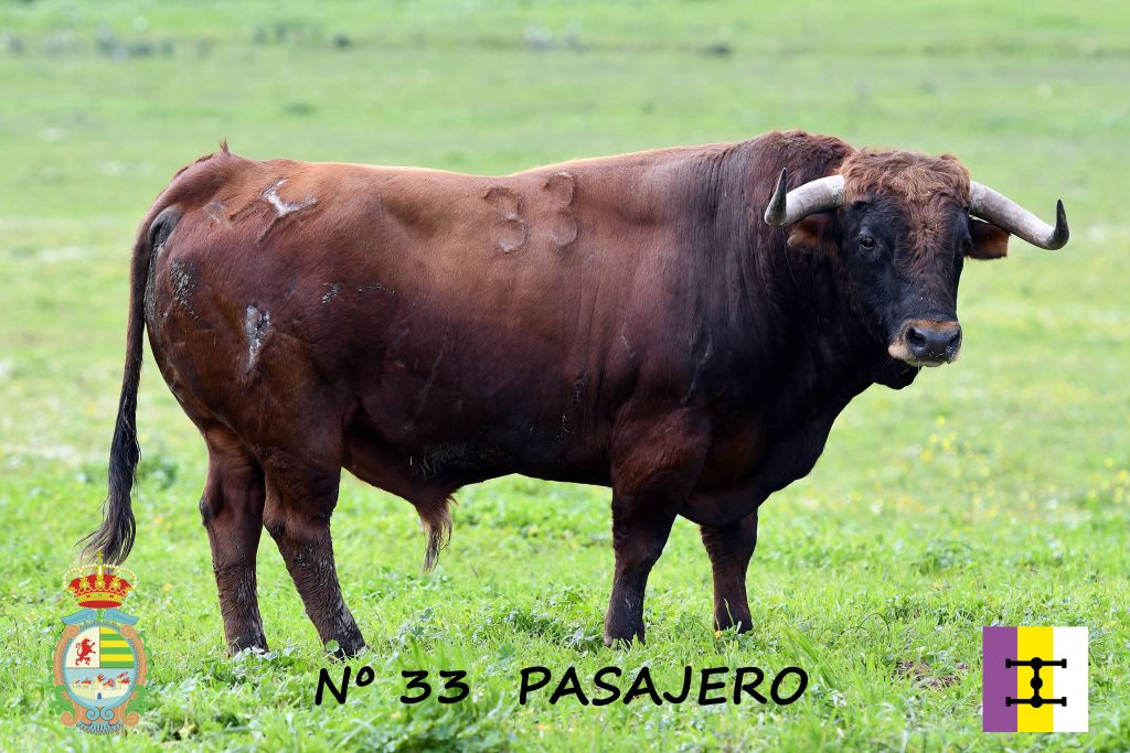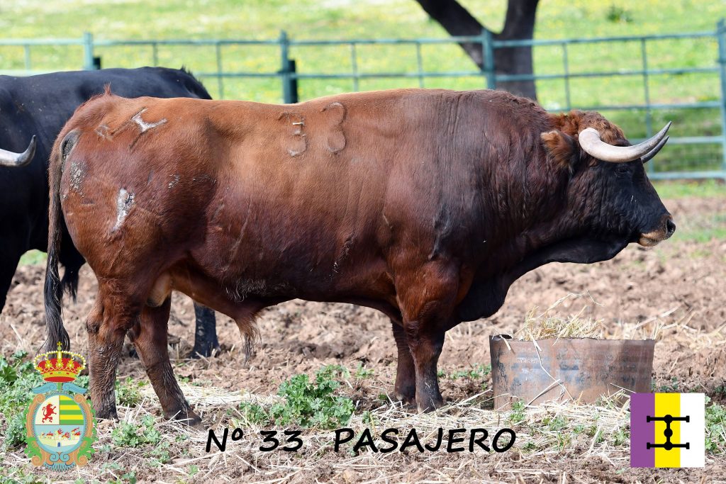 Villaseca de la Sagra presenta el segundo toro para la IV Corrida Benéfica. Nº 33 «Pasajero» – Castaño ojinegro. Trapío, mirada desafiante y hechuras de toro íntegro.