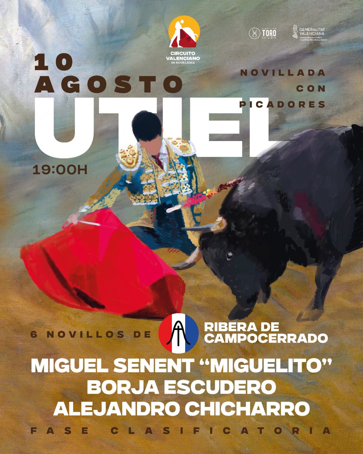 • 10 de agosto, Utiel. Novillos de Ribera de Campo Cerrado para Miguel Senent “Miguelito”, Borja Escudero y Alejandro Chicharro.