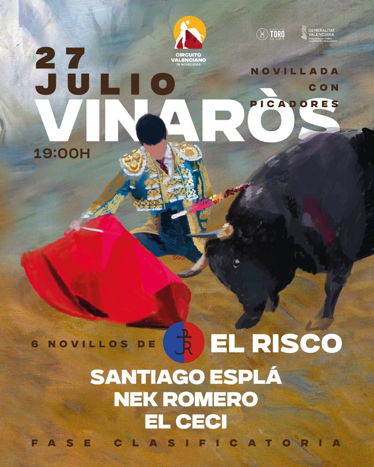 • 27 de julio, Vinaròs. Novillos de El Risco para Santiago Esplá, Nek Romero y El Ceci.