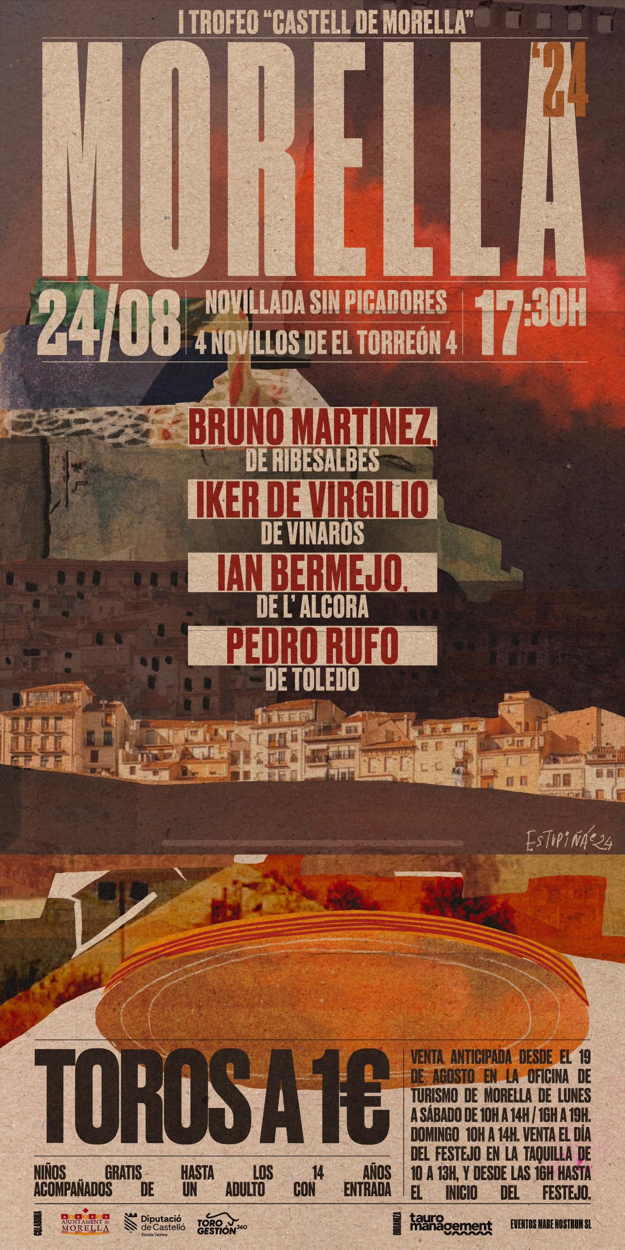 La primera de las novilladas, el próximo 24 de agosto en el conocido municipio medieval de Morella supone a su vez la recuperación de los festejos taurinos de lidia tras más de 20 años desde que se realizó el último en su histórica plaza que se encuentra dentro del recinto del Castillo de Morella, gran reclamo de uno de los municipios más turísticos de la Comunidad Valenciana. Morella celebra este año su Sexeni, sus fiestas mayores que solo se celebran una vez cada seis años, que este año se rematan con esta novillada. Se lidiarán 4 novillos de la ganadería de El Torreón, para los novilleros castellonenses Bruno Martínez, Iker de Virgilio (que se alzó triunfador en julio del III Trofeo “Niño de la Estrella”) e Ian Bermejo, y el toledano Pedro Rufo, hermano de la figura del toreo Tomás Rufo, que se presenta así en la provincia de Castellón siendo uno de los novilleros punteros de la temporada sin picadores. Estos novilleros se disputarán el I Trofeo “Castell de Morella” para el triunfador.