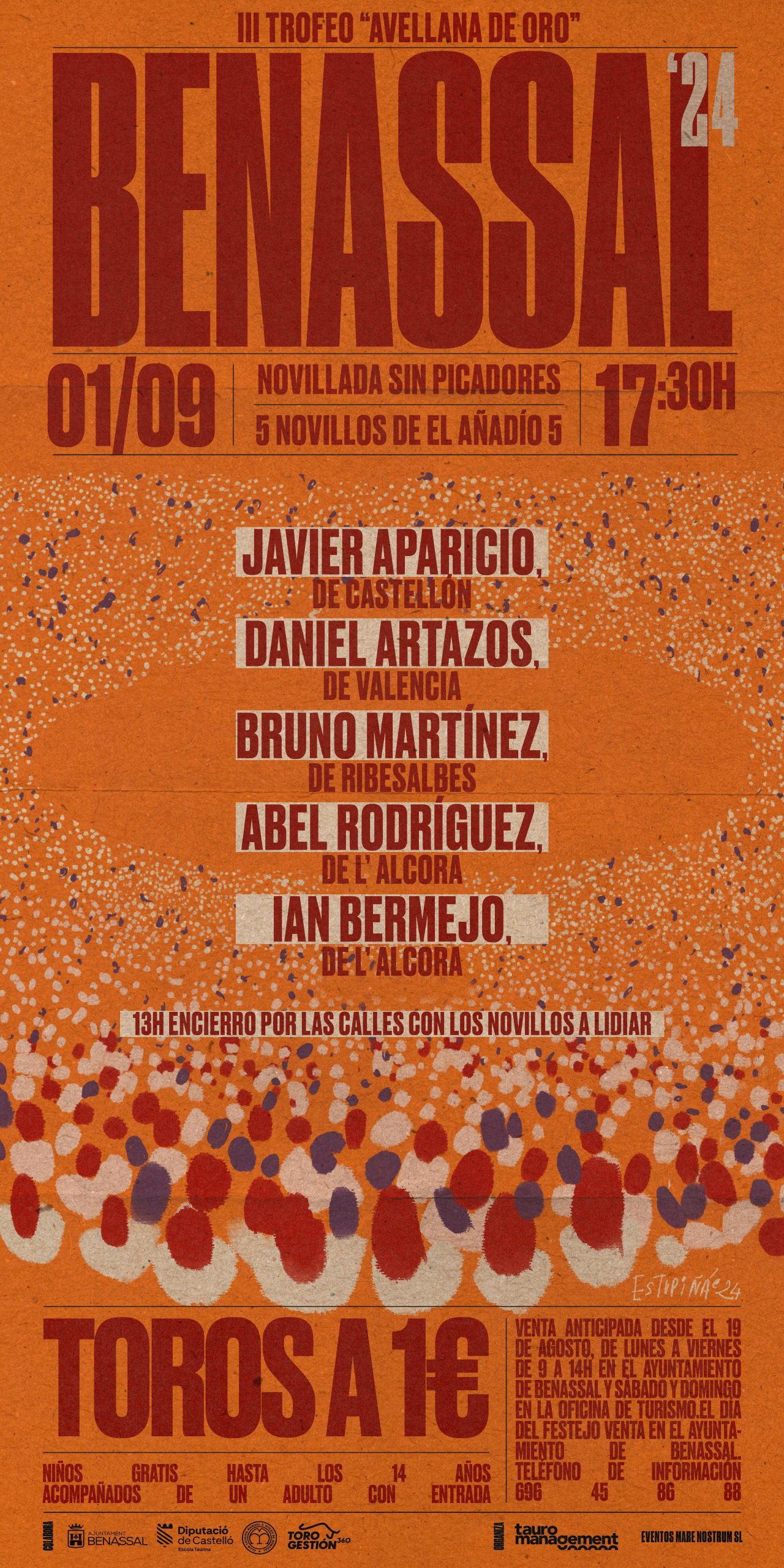 Benassal, feudo clásico de las novilladas en la provincia, también albergará su novillada el domingo 1 de septiembre, en lo que será el III Trofeo “Avellana de Oro”, con la colaboración del Club Taurino Manolo Molés, y en cuya plaza artesanal conocida como “La Maestranza del Maestrazgo” se lidiarán 5 novillos de la ganadería jienense de El Añadío, de encaste Santa Coloma, para los novilleros de la Escuela Taurina de Castellón: Javier Aparicio, Bruno Martínez, Abel Rodríguez e Ian Bermejo. Y completará el cartel, por parte de la Escuela Taurina de Valencia, Daniel Artazos. Los novillos correrán el tradicional encierro por las calles de Benassal a las 13 horas el día del festejo.