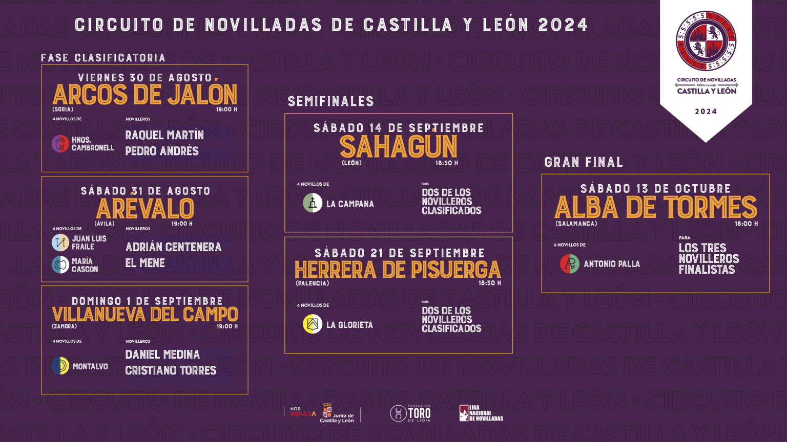 –    Sahagún (14 de septiembre): Novillos de La Campana para los dos clasificados.