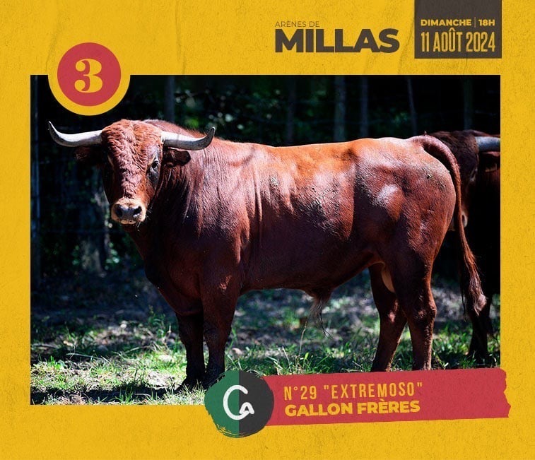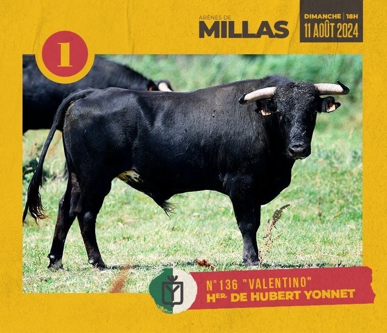 Domingo 11 de agosto en la plaza de toros de Millas (Francia), se dará una novillada concurso de ganaderías francesas con lidia por orden de antigüedad utreros de: