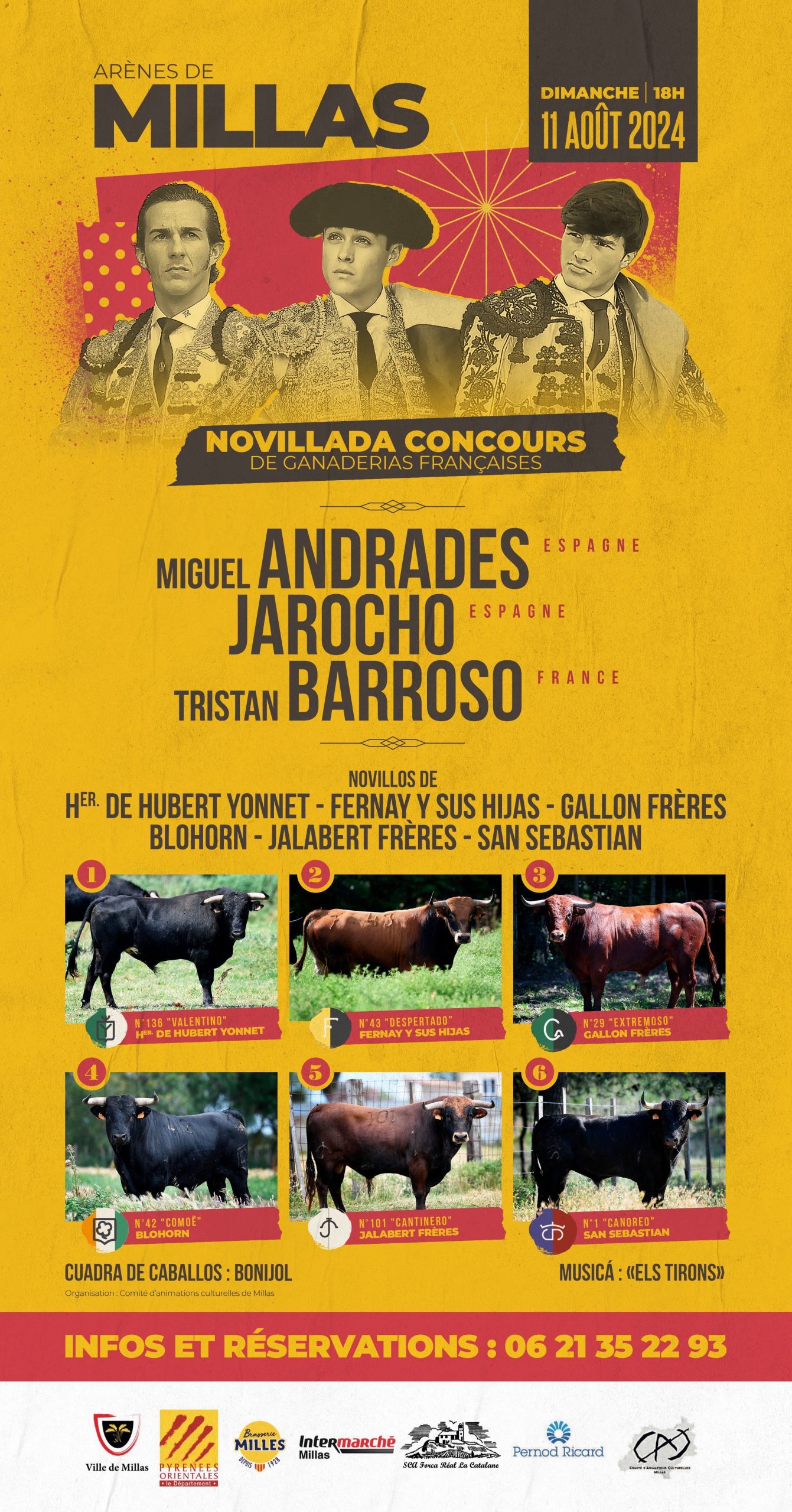 La empresa de la plaza de toros de Millas ha presentado los 6 novillos elegidos y el cartel oficial de la novillada concurso prevista el próximo domingo 11 de agosto.