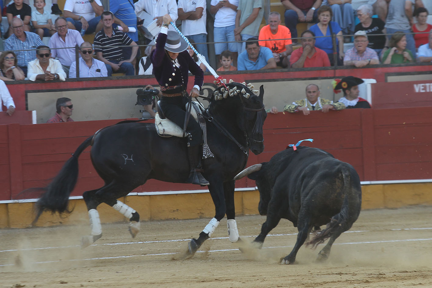 derroche de bravura aprovechado al máximo por una cuadra en estado de gracia y un torero pleno de ambición y buen hacer. Tanto JIBARO de salida, como el templado BERLIN, impecable en banderillas y templando de costado o con las hermosinas. Para cerrar primero con MALBEC dando cuerpo a las piruetas ante un astado que ponía toda la emoción de la suerte y definitivamente terminar con JUSTICIERO, con cortas y un precioso par a dos manos antes de enterrar un rejonazo fulminante al