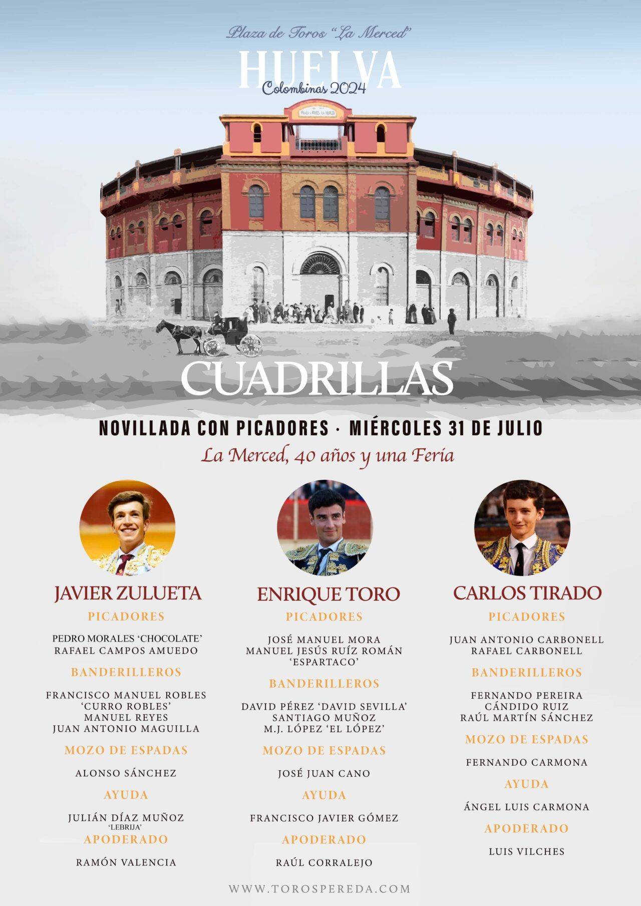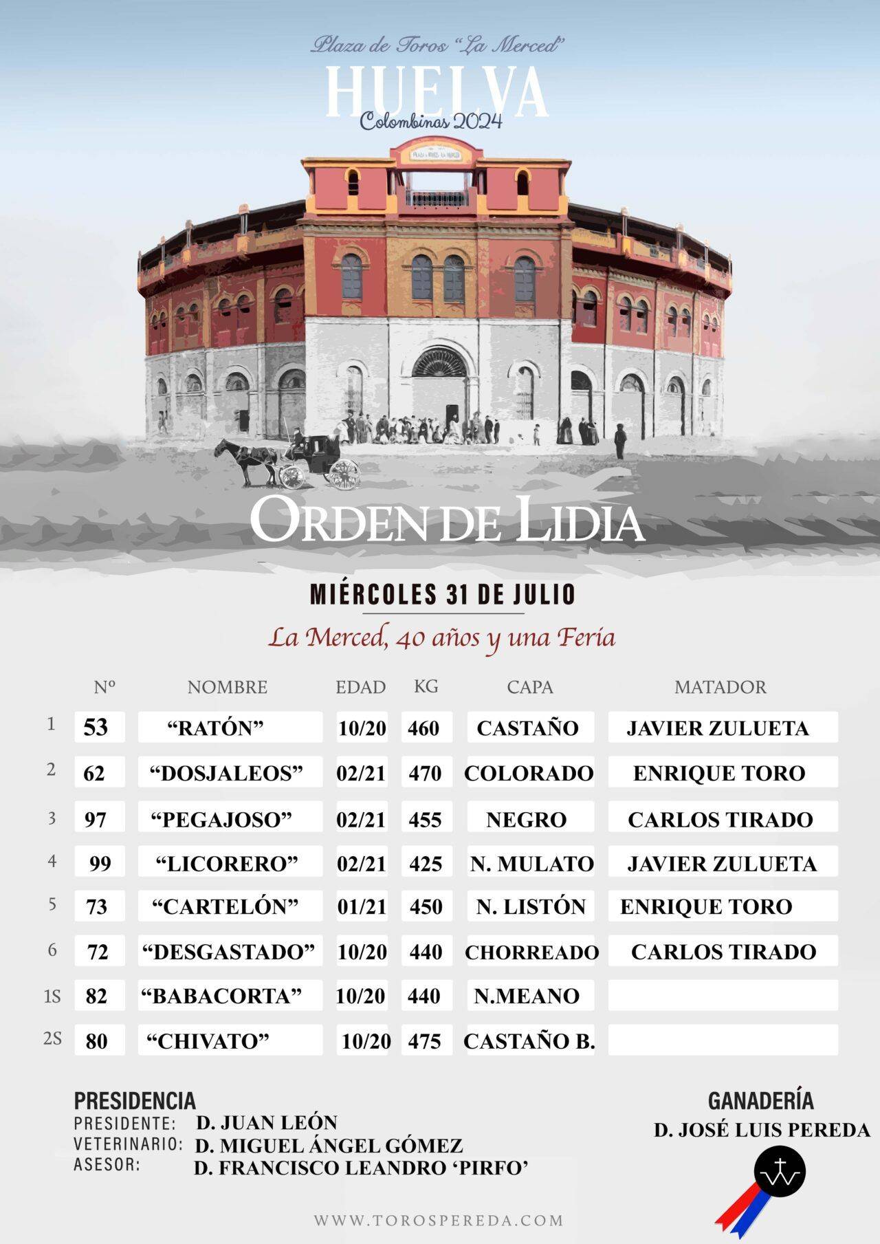 Cartel, Orden de lidia, Equipo Presidencial, Ganadería, Cuadrillas y Galería de fotos.