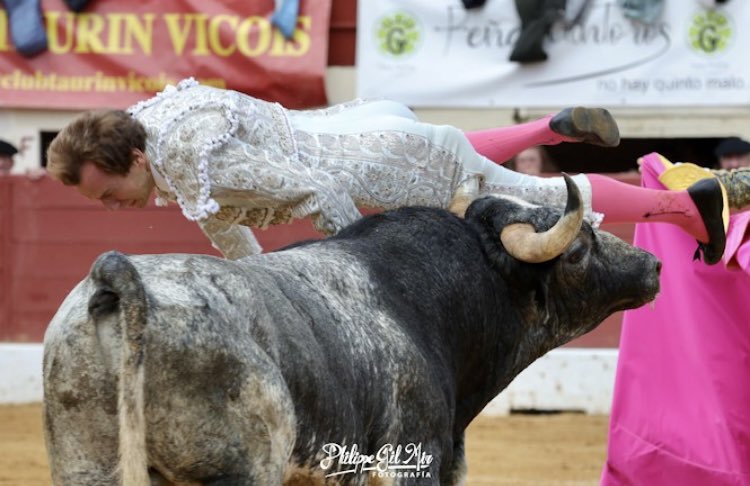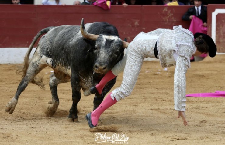 Román ha sido cogido muy gravemente mientras colocaba en el caballo al segundo toro de Los Maños en Vic-Fezensac. Fue prendido por el muslo izquierdo llevandole prendido varios metros sobre el pitón.