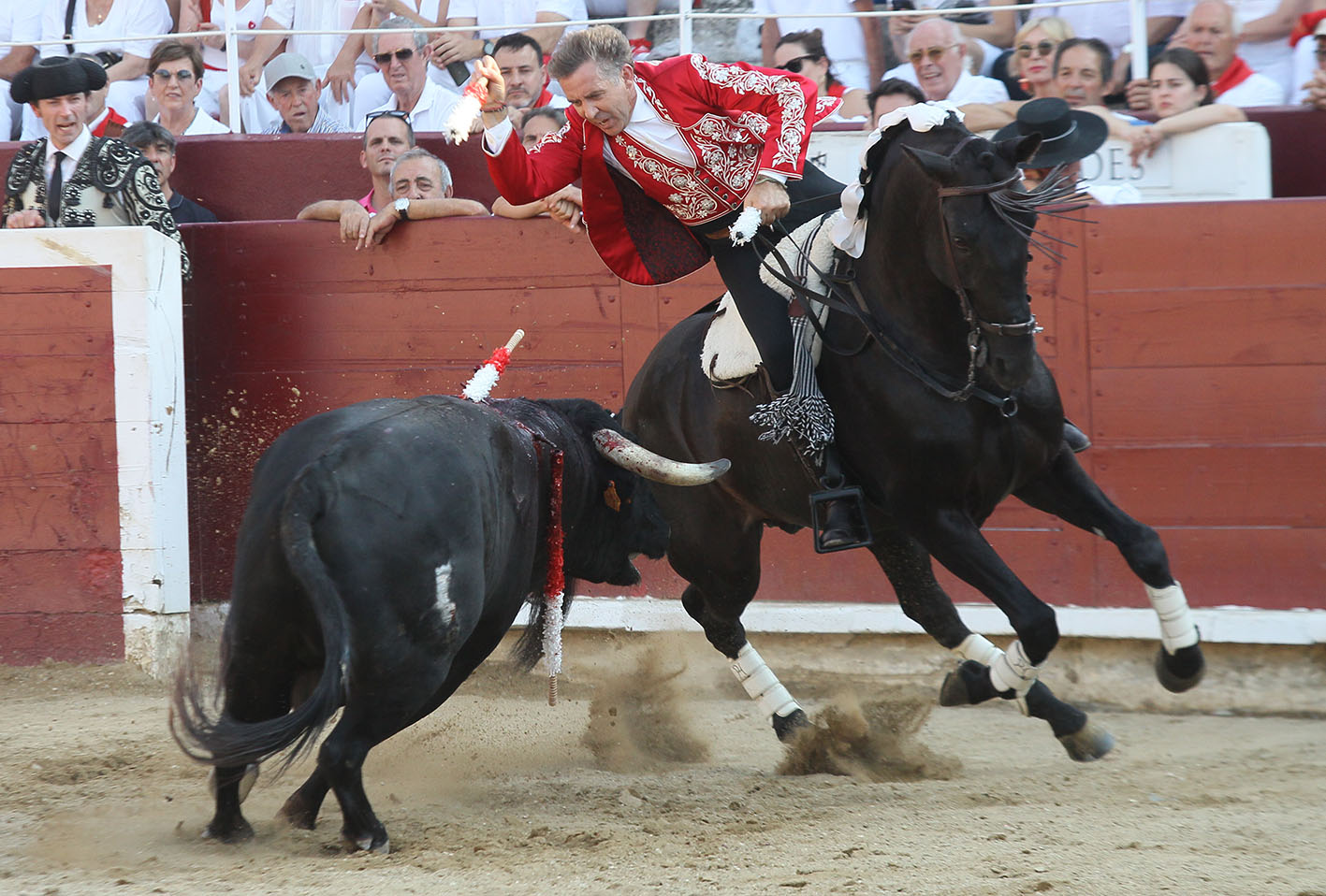 Segundo toro de la Ganadería de Pablo Hermoso de Mendoza, número 28, de nombre Costurero: De salida NOMADA (1 rejón de castigo); en banderillas NAVEGANTE (2 banderillas) e ILUSION (2 banderillas): y para el último tercio GENEROSO (tres cortas, un par a dos manos y un rejón de muerte)