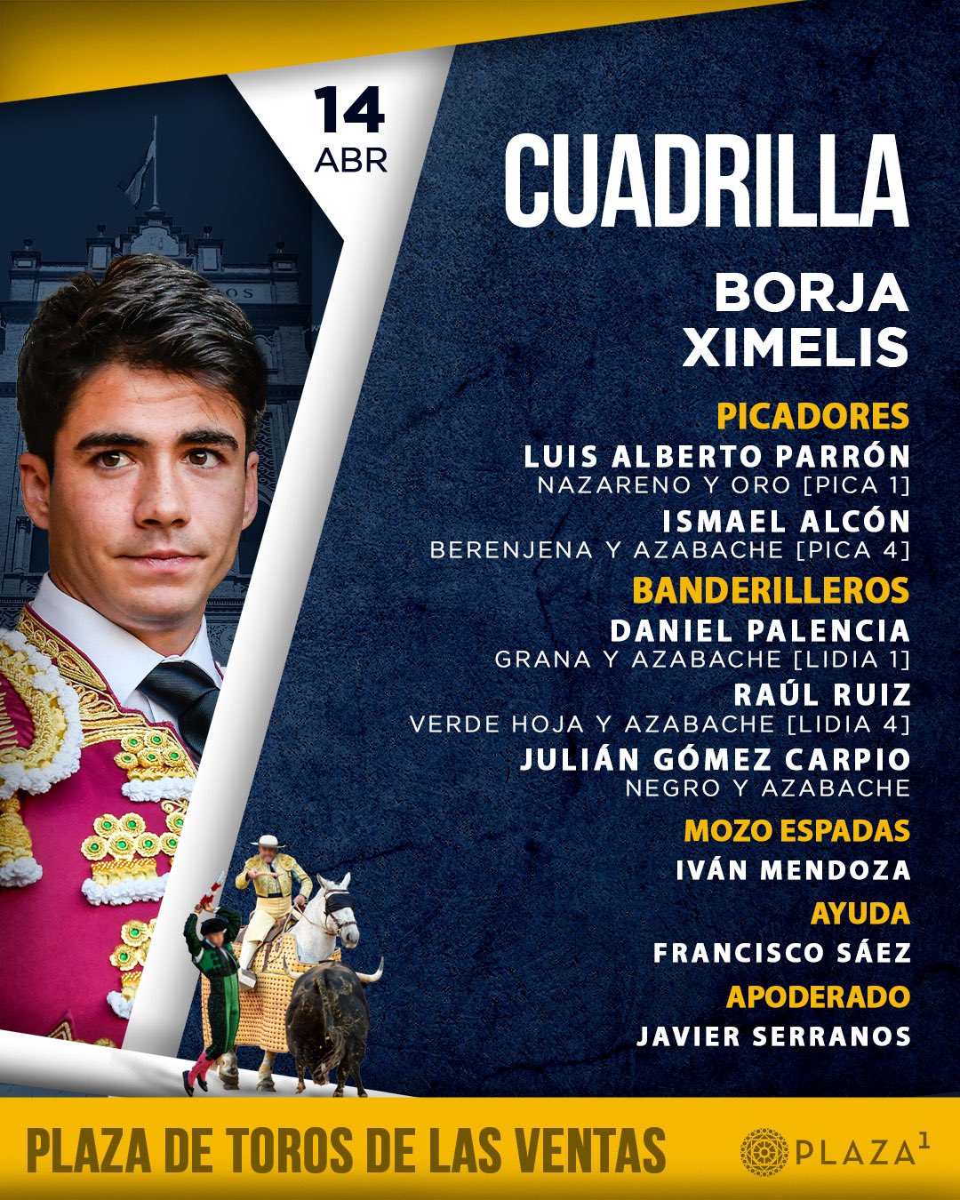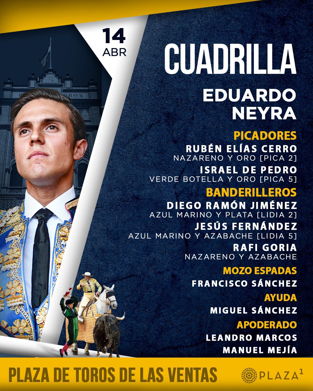 Este es el orden de lidia y las cuadrillas
