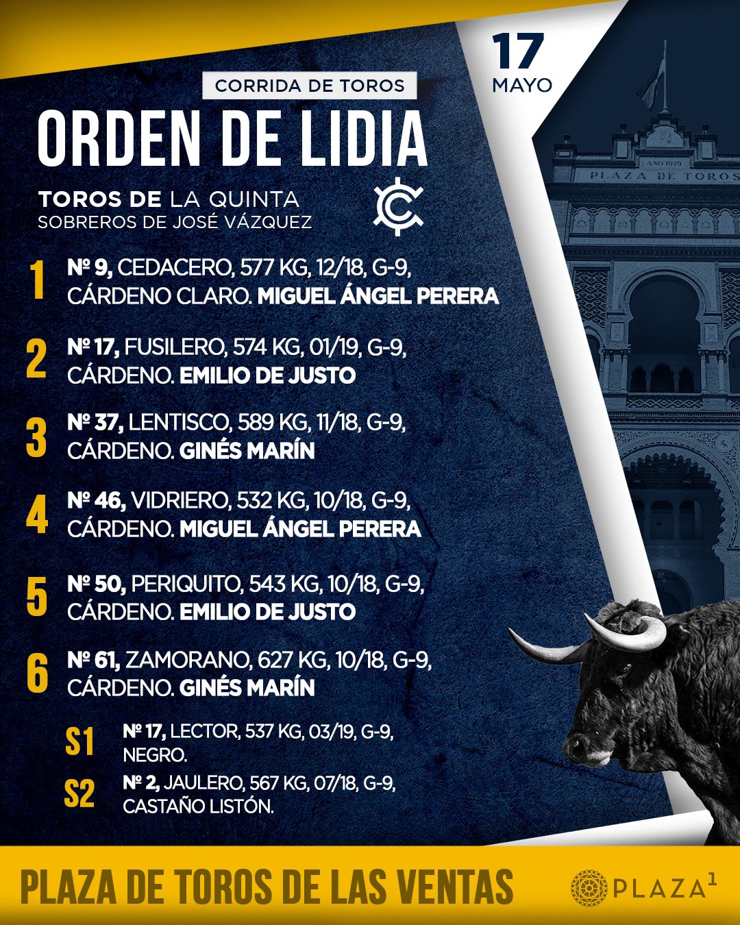 Un encierro de La Quinta aguarda ya en los chiqueros de la plaza para el séptimo festejo de abono de la Feria de San Isidro 2024, tercera cita de ‘No hay billetes’. Miguel Ángel PereraEmilio de Justo y Ginés Marín trenzarán el paseíllo hoy a las 19:00h. en la Plaza de Toros de Las Ventas.