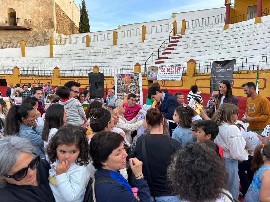 El extremeño Sergio Domínguez “El Mella” tuvo ayer la presentación del cartel de la final en la plaza de toros de Barcarrota, la cual estuvo llena de aficionados de la localidad y de los vecinos de Táliga.