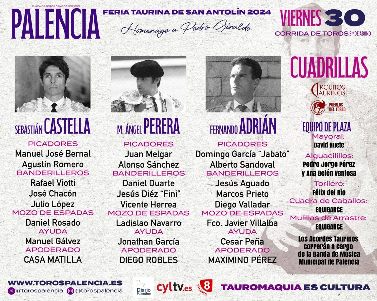 El orden de lidia y cuadrillas es el siguiente: