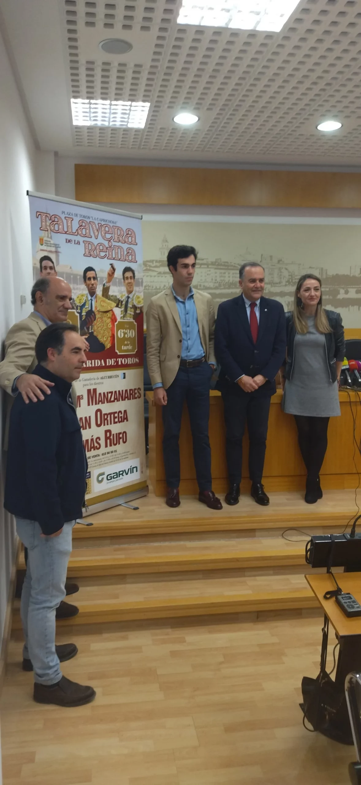 Cerró el acto la foto de familia con la presencia de Pablo Lozano como ganadero de Alcurrucén a quién Antonio Rubio agradeció el llevar una corrida tan escogida y con las palabras de María Pilar Guerrero Concejala de Festejos animando a la gente a acudir a una cita tan importante.